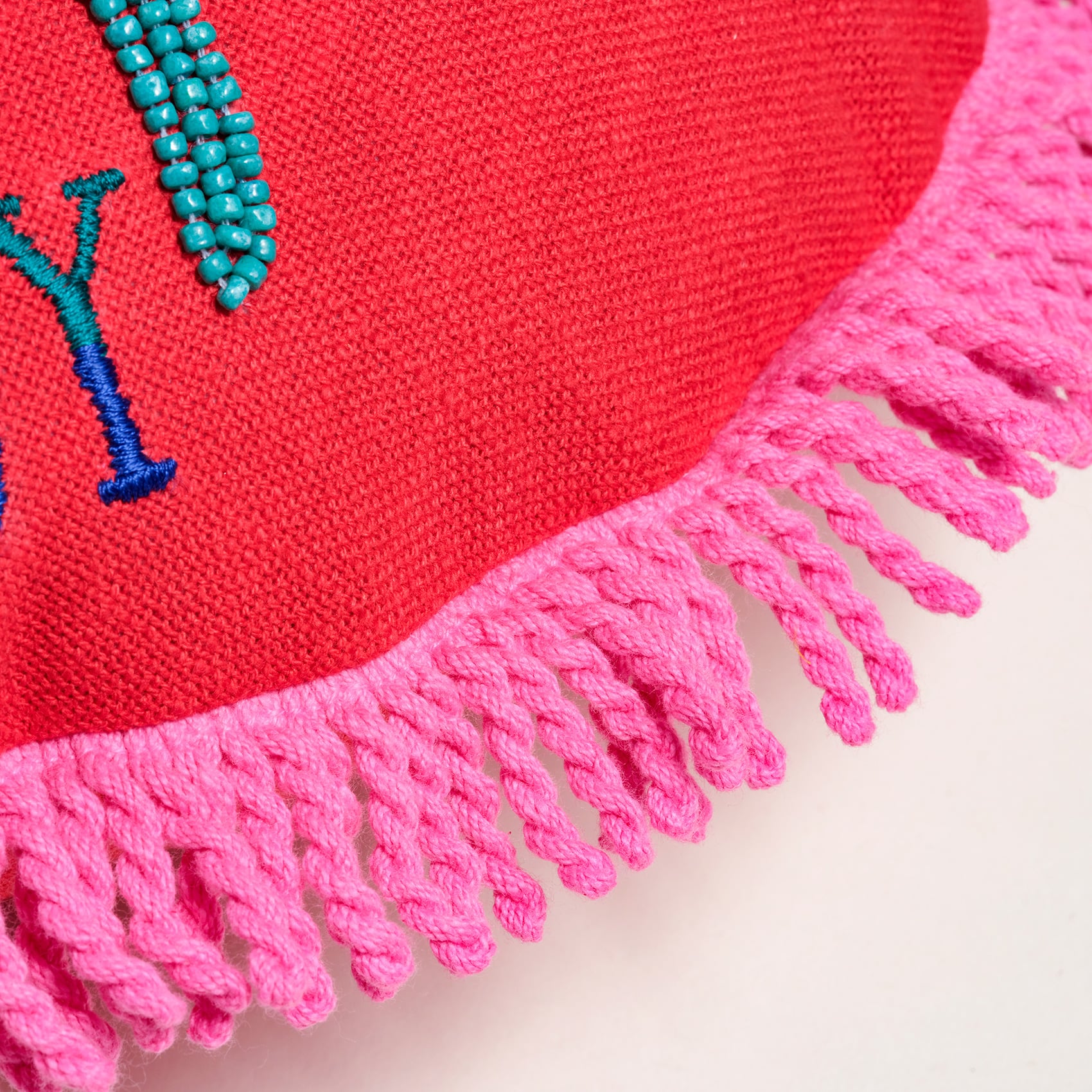 Ghunı Saçaklı Nakışlı Pamuk Dolgulu Kırlent 40 Cm Kırmızı