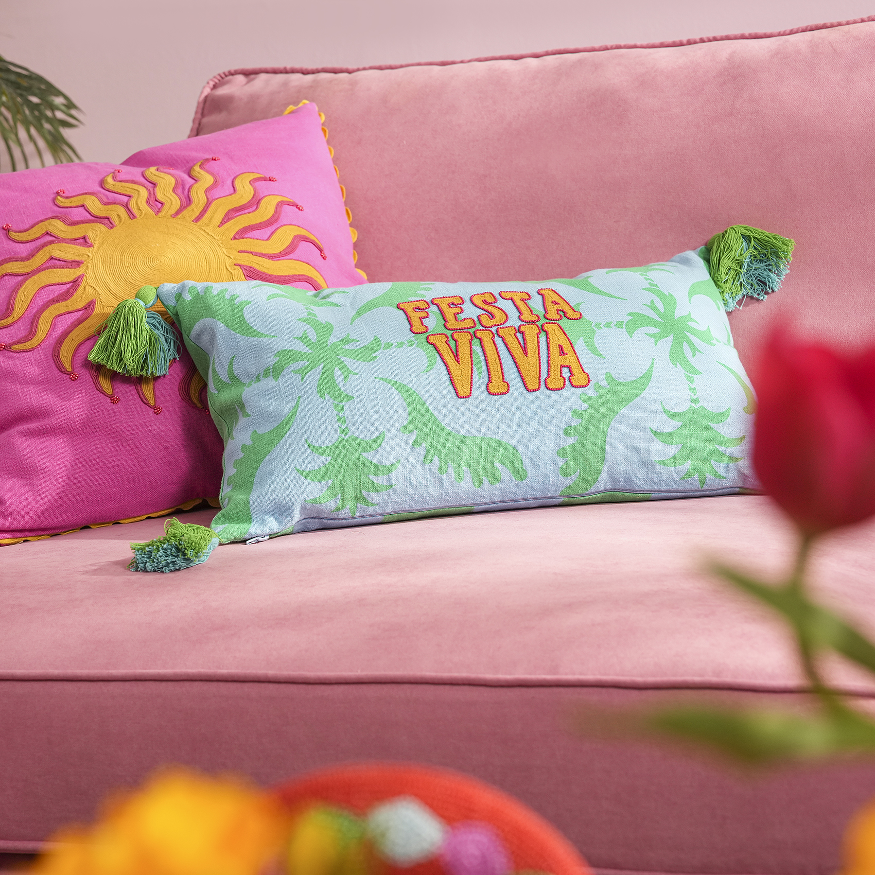 Hansi püsküllü kırlent, tropik bir festivalin enerjisinden ilham alıyor. Zsa Zsa Zsu’nun yaratıcı ekibi, renklerin verdiği kıpır kıpır duyguyu ve tropik silüetlerin canlı ritmini bu tasarımda bir araya getirdi. Püsküller tasarıma oyunbaz bir hareket katarken 30x55 cm formu koltuklara, yataklara ve okuma köşelerine dinamik bir dokunuş sağlıyor. %100 pamuk dokusu konforu artırıyor; desenlerin yaşattığı pozitif hava mekâna capcanlı bir karakter kazandırıyor. Hindistan’da özenle üretildi.