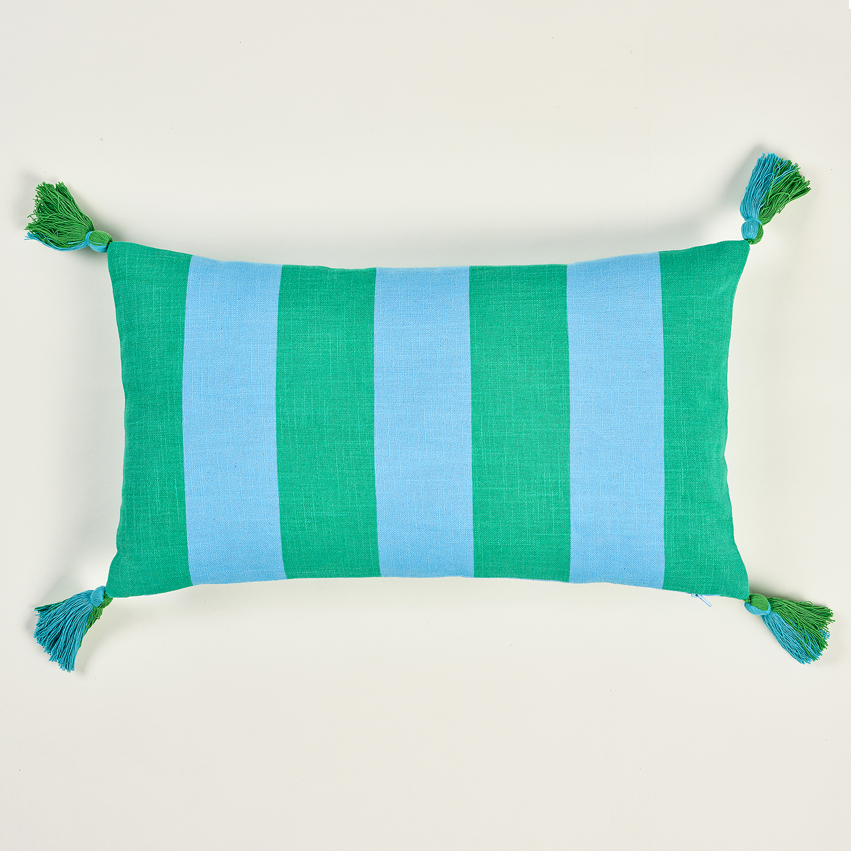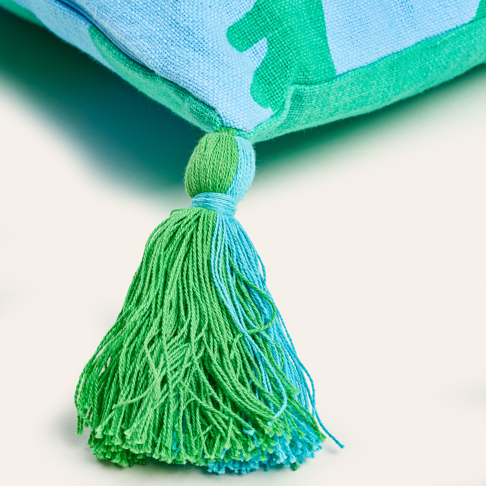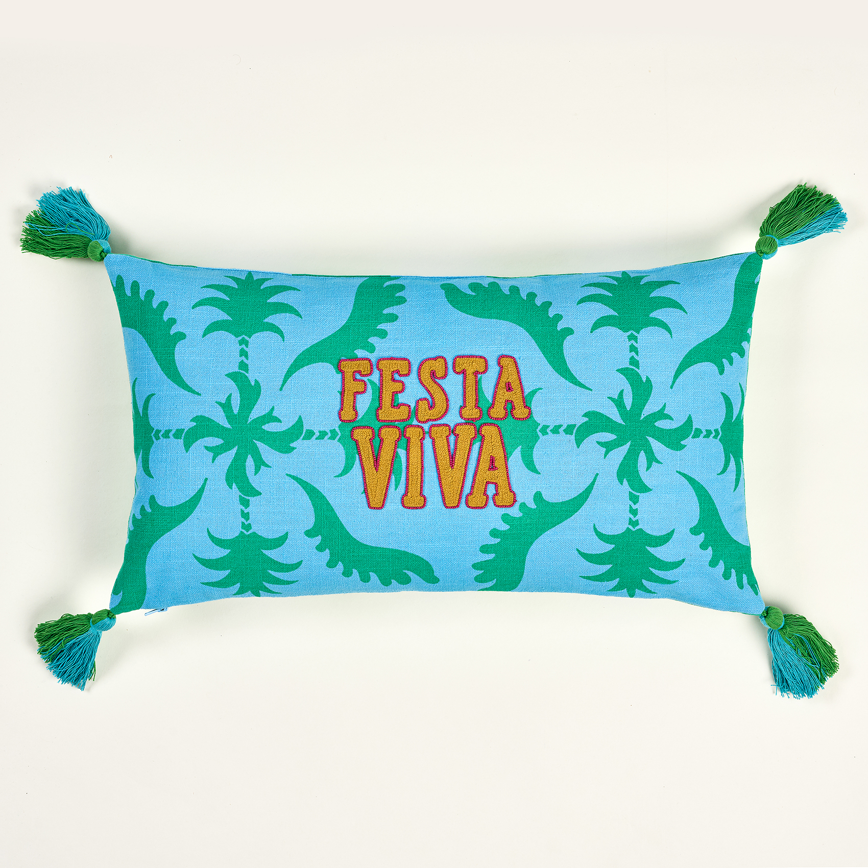 Hansı Dijital Baskılı Püsküllü Nakışlı Pamuk Dolgulu Kırlent 30x55 Cm Yeşil - Mavi