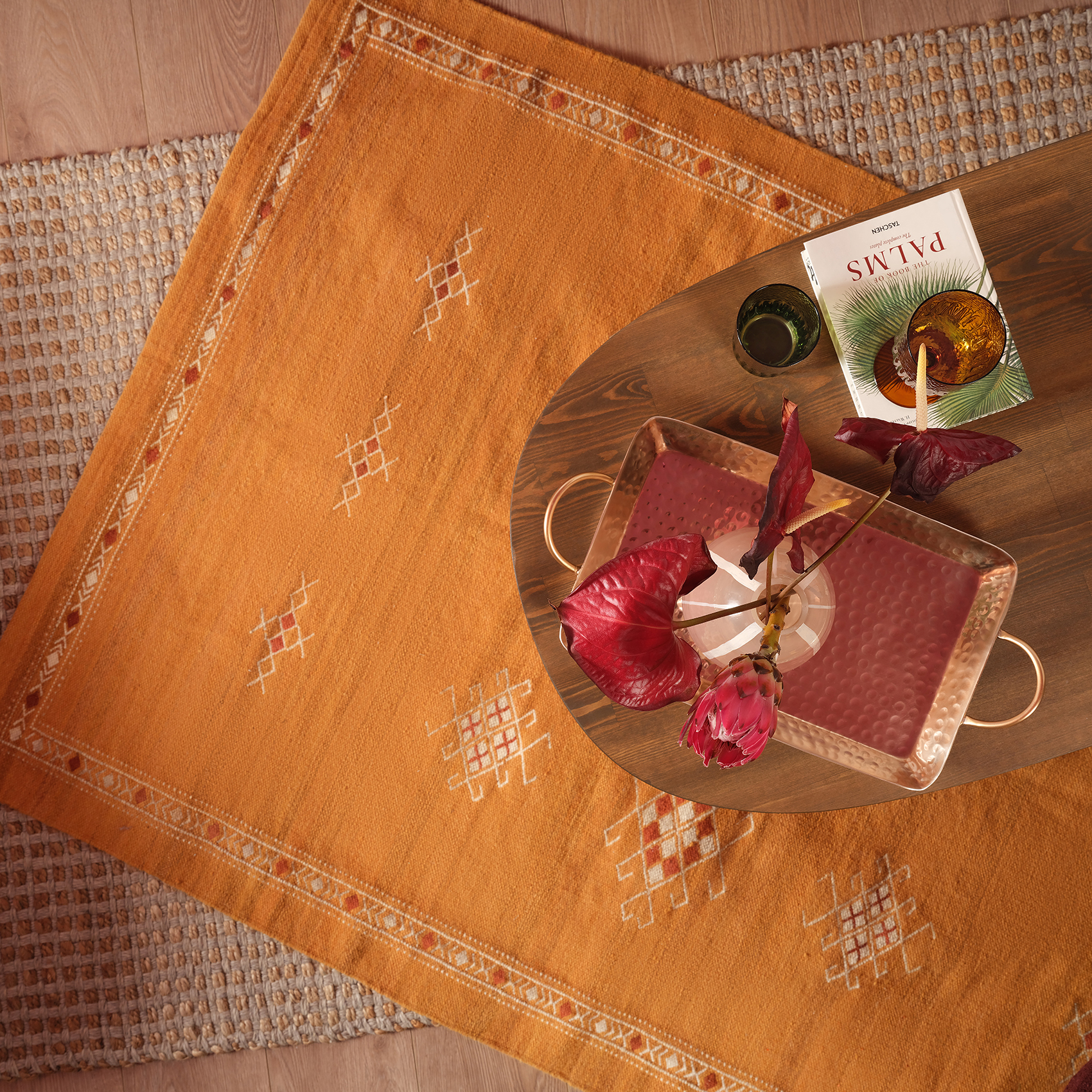 Heritage koleksiyonunun eklektik güzelliklerinden biri olan Jaipur yün kilim, Hindistan'ın geleneksel dokuma sanatını modern yaşam alanlarına taşıyor. %85 yün ve %15 pamuktan üretilen bu yün kilim, hem doğal malzemelerin sıcaklığını hem de ince el işçiliğinin zarafetini bir araya getiriyor. Her dokuma iplik, ustaların ellerinden çıkmış ve doğadan ilham almış bir sanat eserine dönüşüyor.