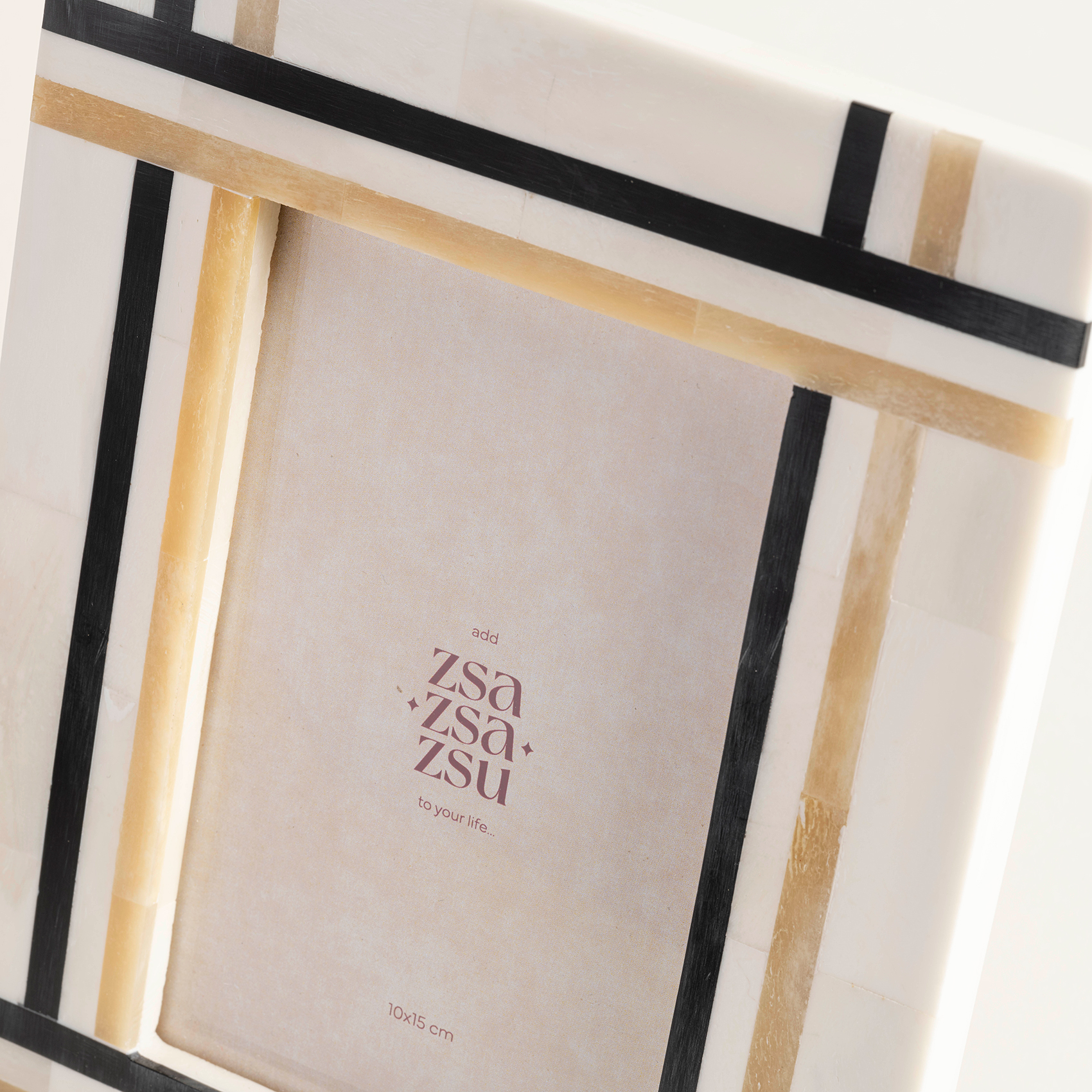 Jewar çerçeve, Hindistan’da yaşayan artizanlar tarafından geleneksel sedef kakma ve kemik oyma teknikleriyle üretiliyor. Geometrik desenlerle sahip siyah beyaz çerçevenin parlaklığı, kullanılan kaliteli reçineden kaynaklanıyor. Yüksek ısıya ve direkt güçlü ışığa maruz bırakmayın. Temizlemek için hafif nemli yumuşak bir kuru bez kullanabilirsiniz.