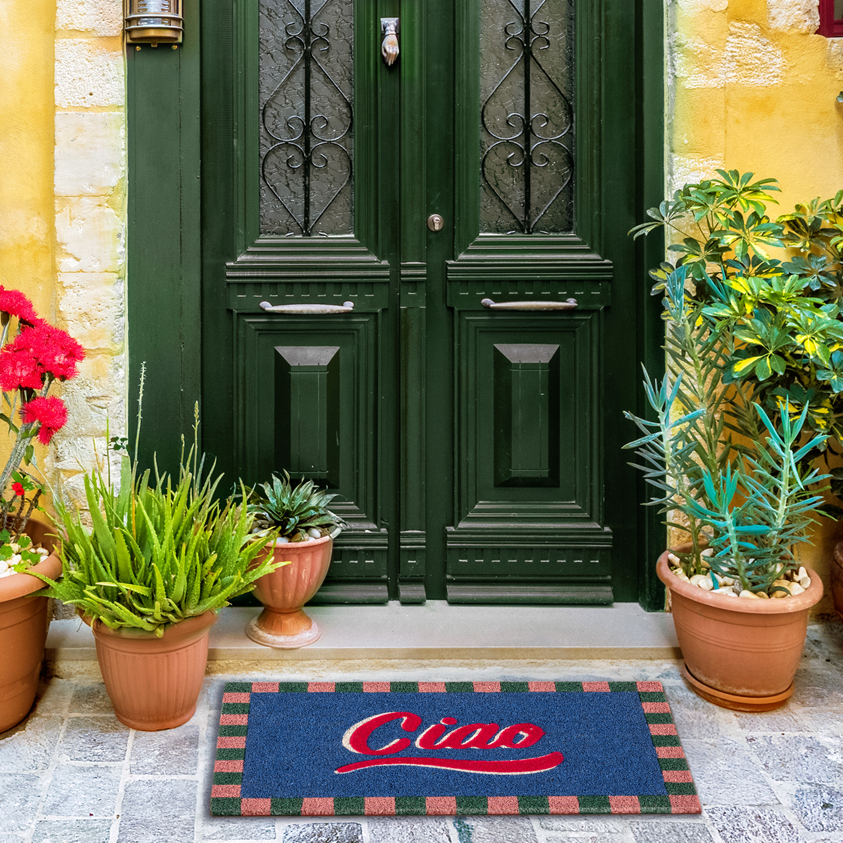 Evinizin kapısında bekleyen bu paspas, her “Ciao” yazısıyla misafirlerinize İtalyan esintili, neşeli bir selam veriyor. Mavi gökyüzü kadar derin bir zeminde, pembe ve yeşil çerçevelerin içinde parlayan bu “Ciao”, aslında sıradan bir merhaba değil; Zsa Zsa Zsu'nun coşkusunu, canlılığını ve hayat dolu enerjisini yansıtan bir davet! Hindistan cevizi liflerinin doğal dokusuyla güçlendirilmiş ve flok baskı ile pürüzsüz hale getirilmiş Kerala Hindistan cevizi lifi flok kapı önü paspası, her adımda kendine özgü bir hikaye fısıldıyor. Sanki bir ressamın tuvaline yansıttığı özgür ruh gibi, her misafir kendini eğlenceli bir dünyada buluyor. Dayanıklı yapısı sayesinde, bu paspas yalnızca göz alıcı değil; aynı zamanda her türlü hava koşuluna dost ve yıllar boyunca ilk günkü gibi kalmaya kararlı. Bu paspasla kapınız, sıradan bir giriş olmaktan çıkıp, Zsa Zsa Zsu’nun renkli dünyasına açılan bir portal haline geliyor. Misafirlerinize, her girişte “Merhaba, burası sıradan bir ev değil!” diyerek, kendine özgü bir karşılama sunuyor.