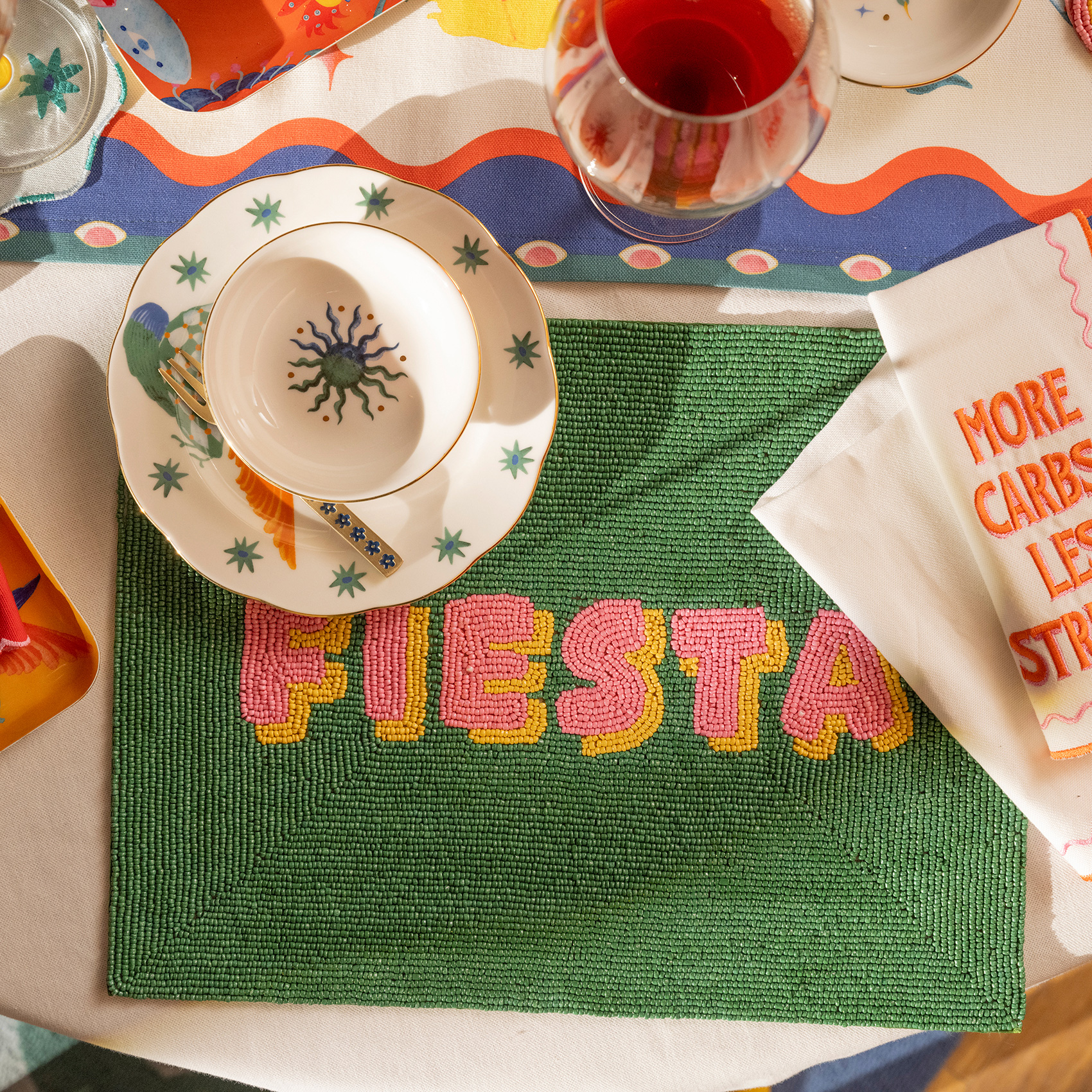 Khanpur boncuklu Amerikan servis, capcanlı renkleri ve oyunbaz konseptiyle sofralarda parti modunu başlatıyor. Zsa Zsa Zsu Tasarım Ekibi’nin yarattığı bu özgün tasarım, Hindistan’daki ustaların ellerinde cam boncuklarla tek tek işlendi. Maximalist koleksiyonunun iddialı olmayı seven, renkleri cömertçe kullanan, sınır tanımayan ruhunu taşıyor. Göz alıcı bir sofra kurmak isteyenlerin vazgeçemeyeceği parça tam da bu.