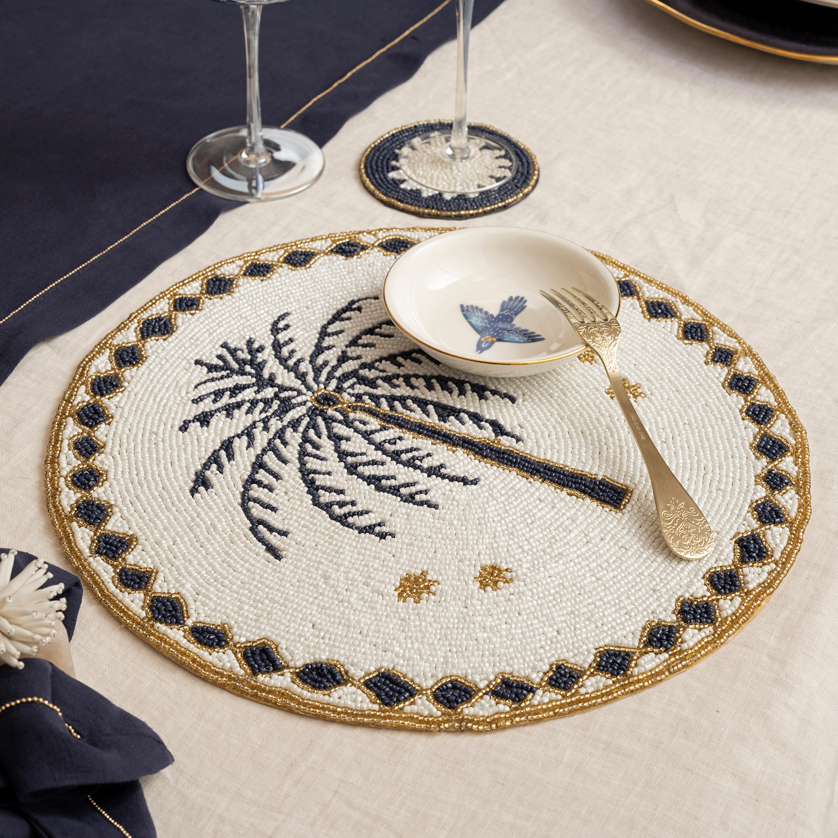 Khanpur Amerikan servisi, Hindistan’da yaşayan usta artizanlar tarafından el işçiliğiyle üretiliyor. Blue koleksiyonunun lüks dokunuşlara sahip özgün deniz temasının stil sahibi duygusunu sofralara taşıyan bu Amerikan servisin cam boncukları görkemli bir sofra tasarımı için aradığınız ışıltıyı sunuyor.