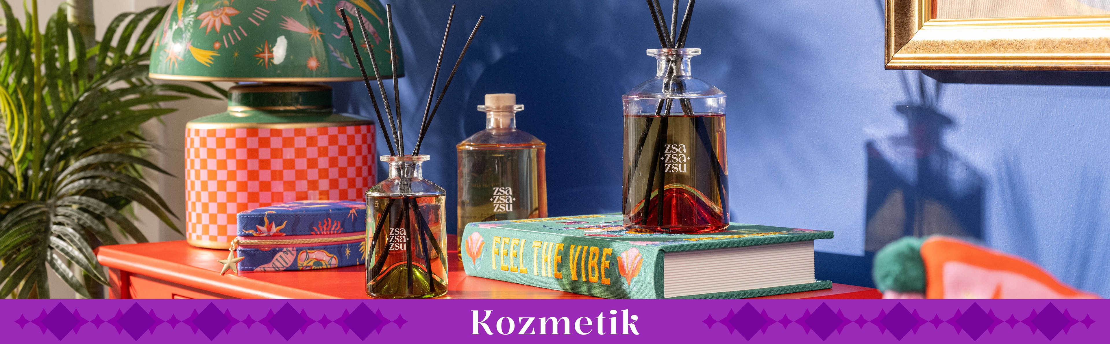 Zsa Zsa Zsu’nun kozmetik dünyası, gündelik ritüellere renk, dokunuşlara duygu katar. Zsa Zsa Zsu’nun sofistike kozmetik reyonunda birbirinden şahane çubuklu oda kokuları, oda spreyleri ve çamaşır kokuları yer alır. Oda spreyi ile ferahlık aniden odanı sararken, lavanta çamaşır kokusu çekmecelerde huzurlu bir imza bırakır. Makyaj çantası içindeki düzen, hayatına minik bir şıklık katar. Pamuk uyku bandı geceyi yumuşacık bir mola yerine çevirirken, kadın gözlük kutusu da seyahatlerde zarafetle eşlik eder. Şık kozmetik aksesuarlarıyla dolu bu koleksiyon, sadece işlev değil, karakter de taşır. Kozmetik çantaları ve uyku bantları usta artizanlar tarafından üretilir. Kozmetik kategorisindeki ürünler de markamızın tüm ürünleri gibi göz alıcı, neşeli ve çok Zsa Zsa Zsu!