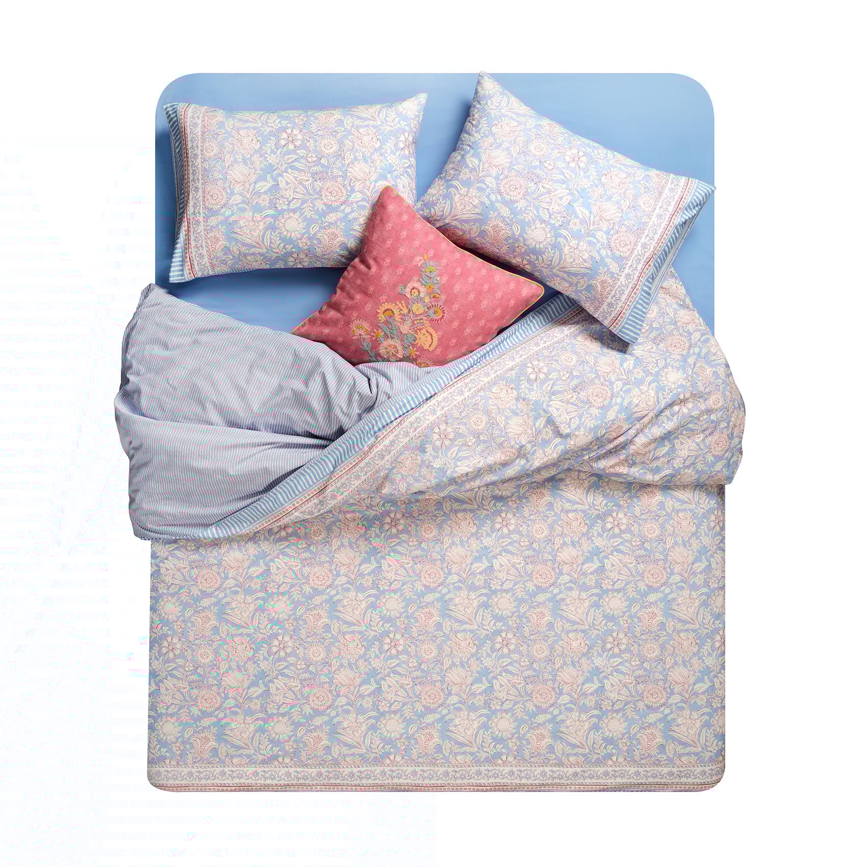Lahor Nevresim Takımı, geleneksel Hint ve Güney Asya tekstillerinde görülen blok baskı estetiğinden ilham alıyor. Ritmik tekrarlarla yüzeye yayılan otantik motifler ve ince geometrik detaylar, geçmişten gelen zanaat geleneğini çağdaş bir yorumla buluşturuyor. %100 pamuk 200 TC percale kumaş üzerine dijital baskı tekniğiyle uygulanan desenler, Zsa Zsa Zsu yaratıcı ekibinin imzasını taşıyor. Nefes alabilen dokusuyla konfor sunan bu tasarım; nevresim, çarşaf ve iki adet yastık kılıfından oluşan tam set olarak sunuluyor. Heritage koleksiyonunda yer alan Lahor, blok baskı geleneğinin kültürel hafızasını yatak odasına taşıyarak mekânda stilize ve anlam dolu bir atmosfer yaratıyor.