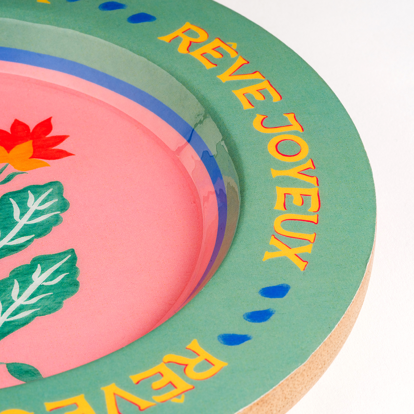 Lakrı Mango Ağacı Sunum Tahtası 21x21x2.5 Cm Pembe - Yeşil