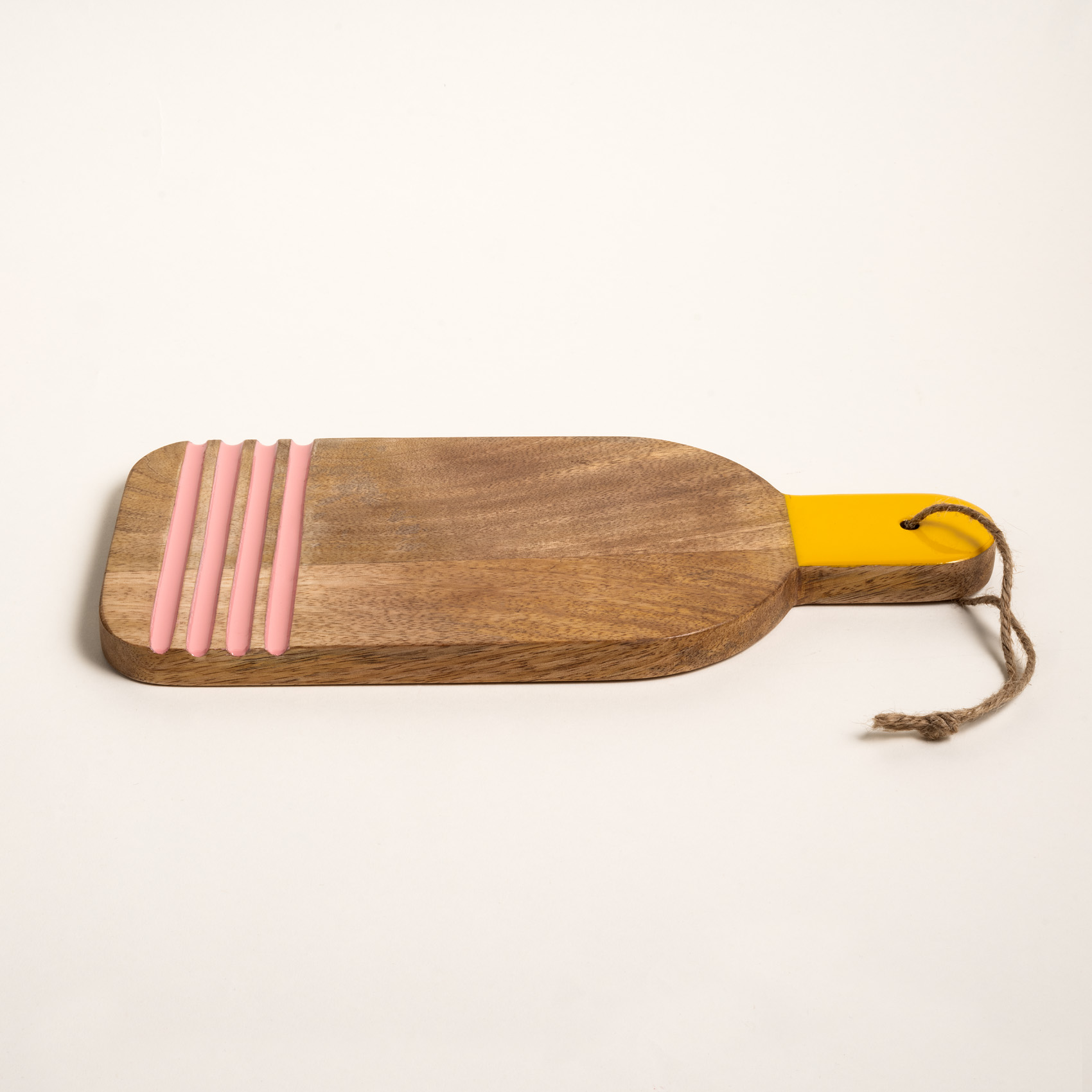 Lakrı Mango Ağacı Sunum Tahtası 33 Cm Sarı - Pembe