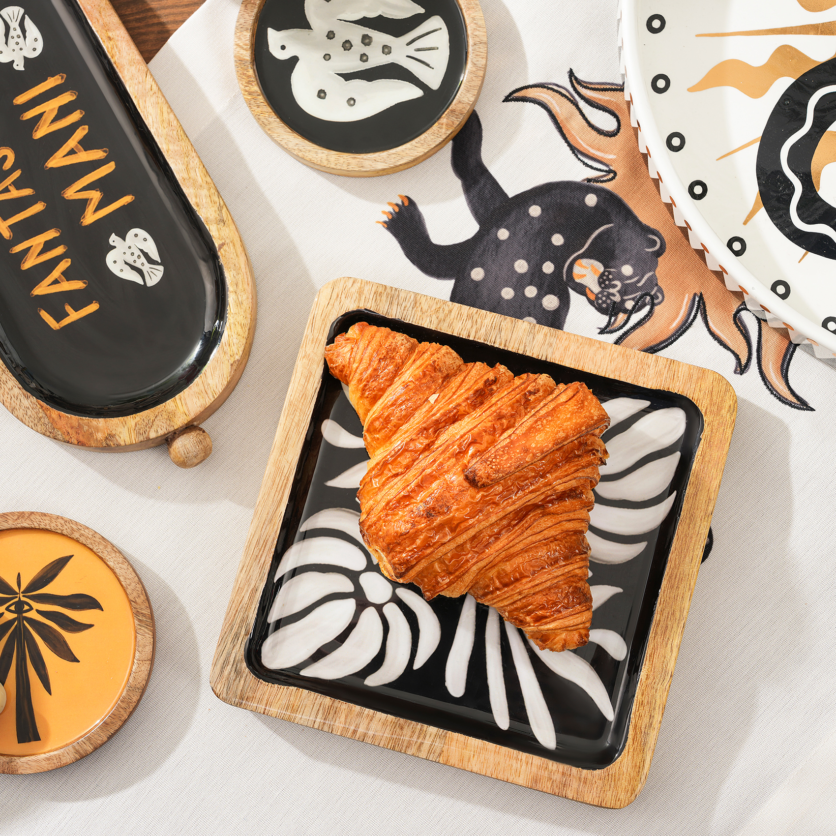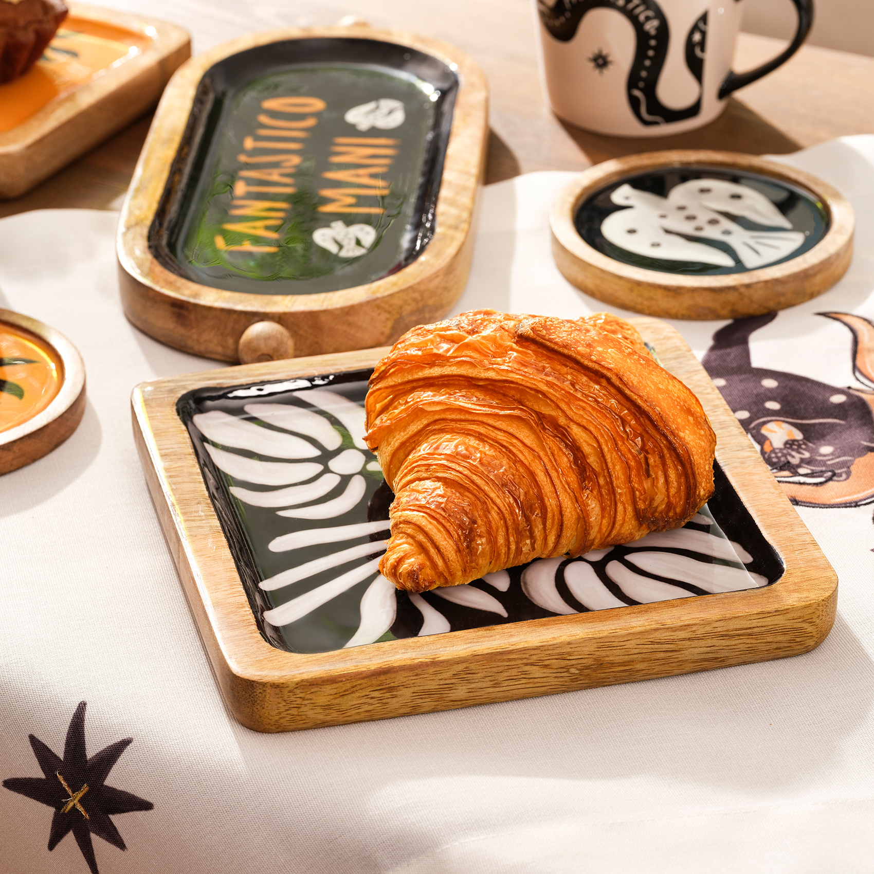 Zsa Zsa Zsu’nun yaratıcı ekibi tarafından tasarlanan Lakri Kare Mango Ağacı Tepsi, Bold koleksiyonunun çarpıcı grafik dünyasını mango ağacının doğal dokusuyla buluşturarak çağdaş bir ifade kazanıyor. Koleksiyonun karakteristik sembollerinden ilham alan bu parça, Hindistan’daki ustaların elinde şekilleniyor ve sirlı yüzeyinin parlak dokusuyla bulunduğu ortama net, enerjik ve modern bir vurgu ekliyor. Günlük ritimlere yaratıcı bir hava katmak, mekâna özgün bir ruh taşımak isteyenler için güçlü bir tamamlayıcı.