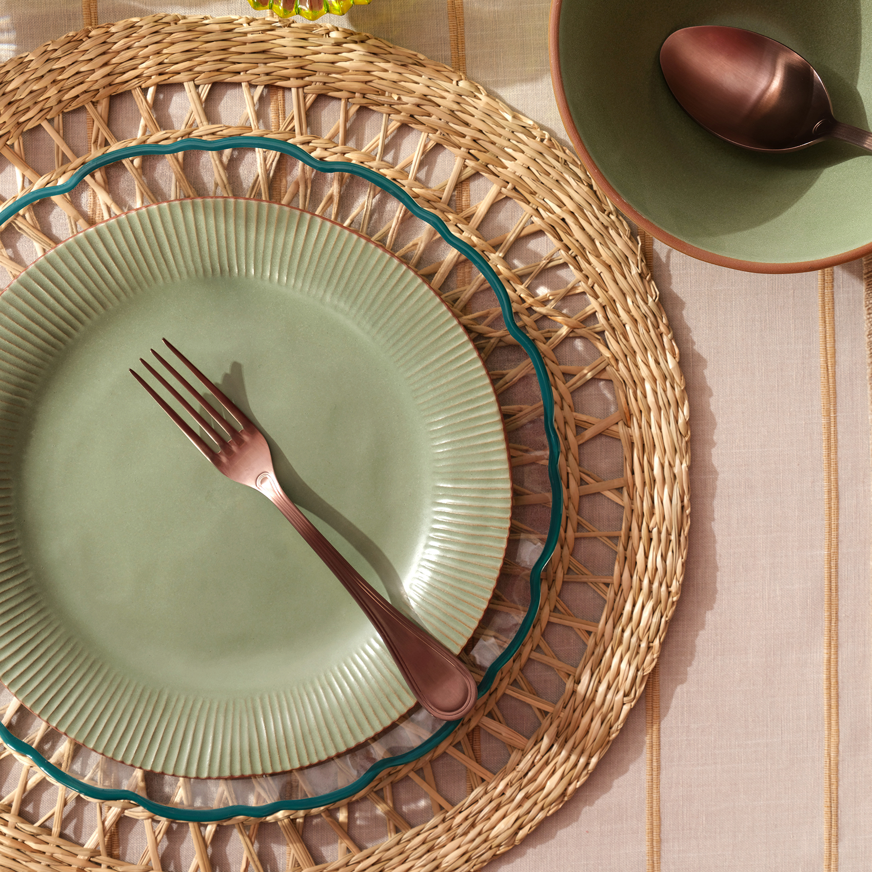 Mat orman yeşilinin kenarlarda ortaya çıkan doğal kiremit rengi ile kontrastlandığı, doğal kilin tüm güzelliğini organik formunda yaşatan Liling yemek tabağının tasarımı dikey kabartmalarda tamamlanıyor. Bu yemek tabağı, geleneksel seramik sanatlarını koruma konusundaki bir bağlılığı yansıtırken modern tasarım anlayışının bakış açısını da içeren bir üretim anlayışını temsil ediyor. Deneyimli ustaların kişisel dokunuşlarının izlerini taşıyan Liling, yüksek kaliteli stoneware kullanılarak üretiliyor