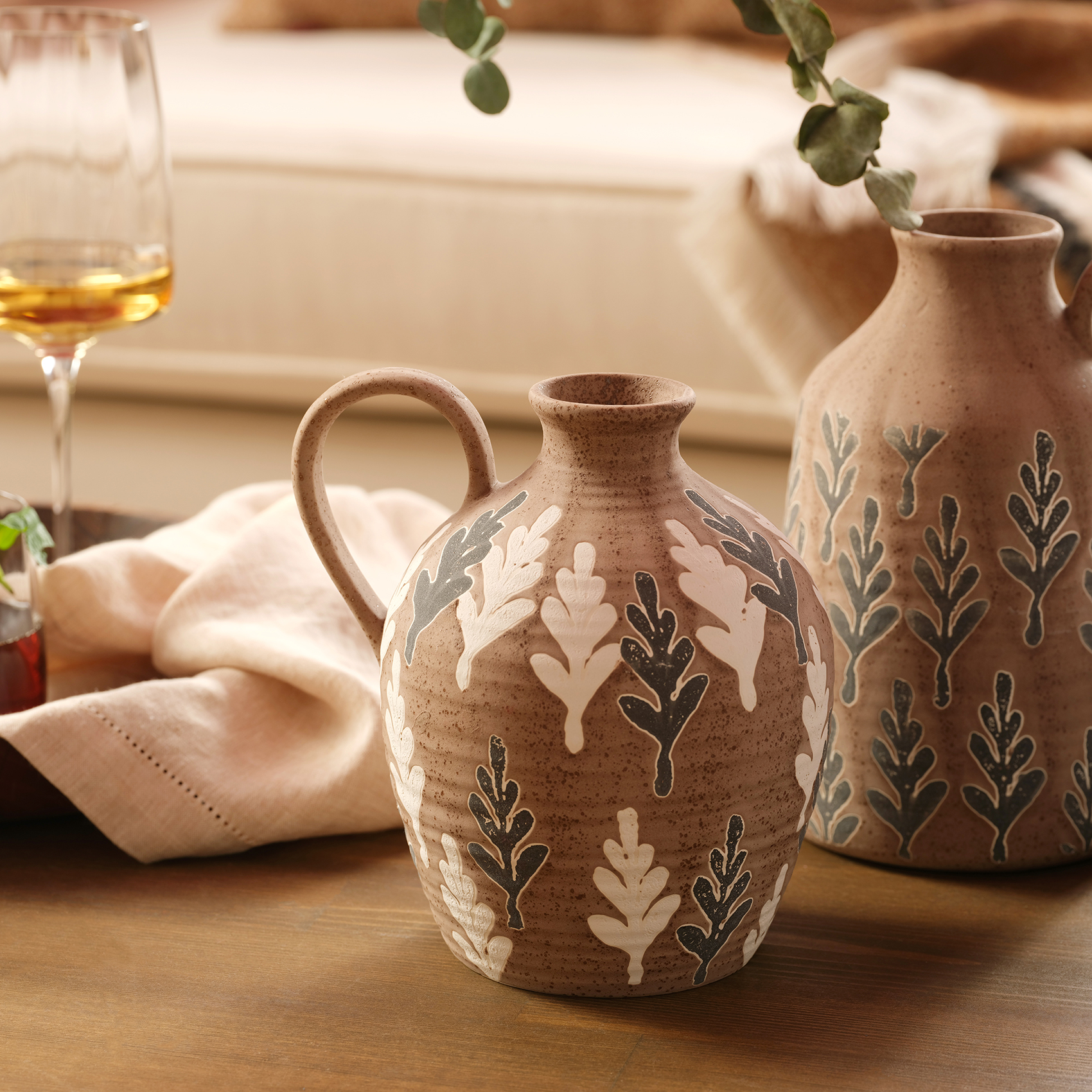 Zamansız Natural koleksiyonumuzda yer alan Lizbon vazo, rustik dokusuyla bir doğal tarih müzesinden çıkıp yaşam alanlarınıza uzanmış bir hazine gibi... Toprağın sıcak kahverengi tonları, reaktif sırların eşsiz derinliğiyle birleşirken, yaprak motifleri doğanın döngüsünü şiirsel bir şekilde yansıtıyor. El işçiliğiyle şekillenen bu zarif obje, geçmişin izlerini taşıyan bir sanat eserini andırıyor. Zarif kulp detayı ve dokulu yüzeyi hem eski dünyanın otantik ruhunu hem de modern tasarımın sofistike çizgilerini bir arada sunuyor. Lizbon vazo, her köşesinde doğanın ve tarihin izlerini saklayan, ruhu olan bir dekorasyon parçası. Onu evinizde sergileyin ve her baktığınızda doğanın büyüleyici geçmişine dokunun.