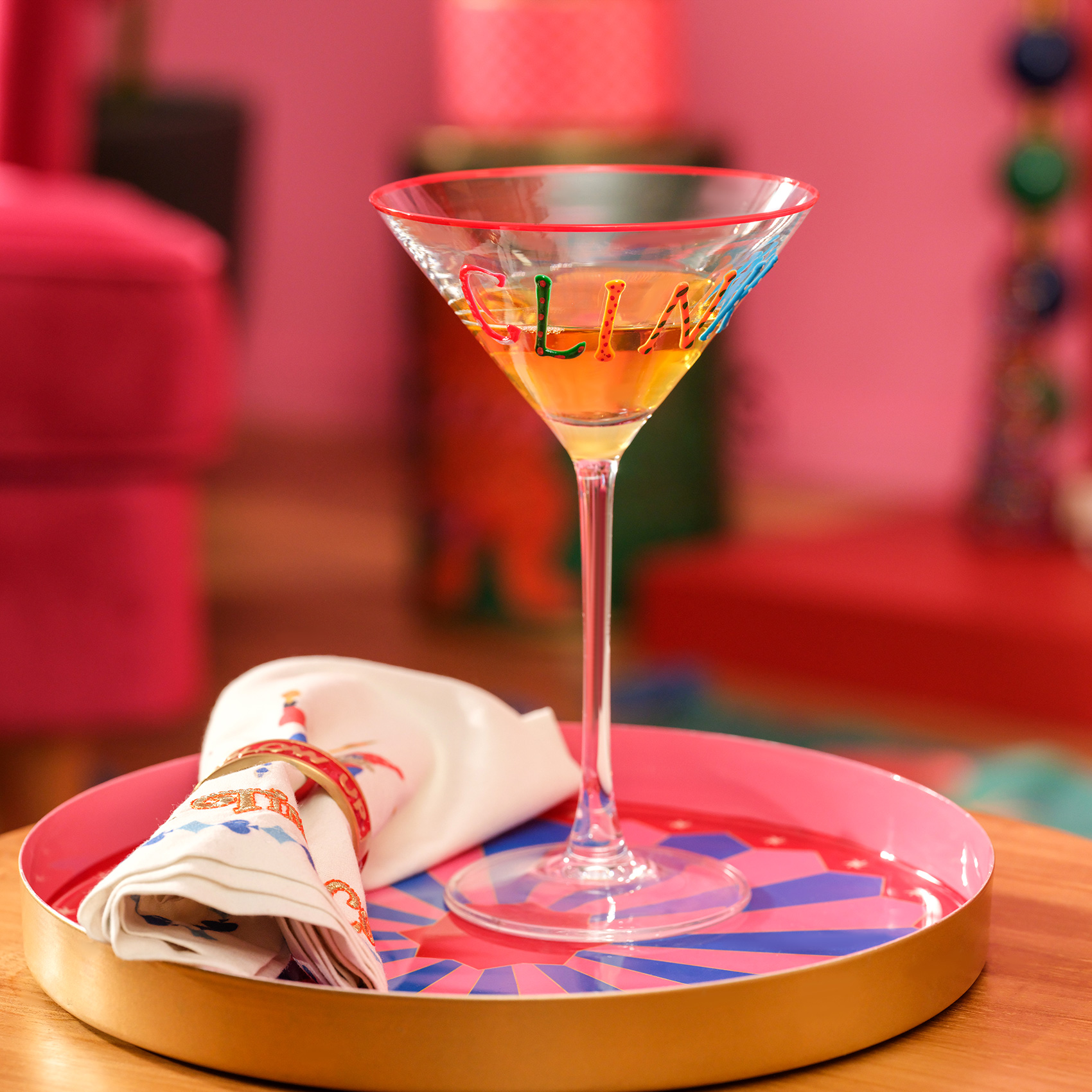 Cheerland’ın sahnesini partinize getiren Loess El Baskısı Cam Martini Kadehi, her yudumu şova dönüştürüyor. El boyaması detayları, cesur tipografisi ve kırmızı çerçevesiyle bu kadeh, kutlamalara eğlenceli ve sofistike bir ruh katıyor. Dekorasyon önerisi: Loess martini kadehlerini sadece kokteyller için değil; renkli tatlı sunumları ya da minik çiçek aranjmanlarıyla da kullanarak sofranıza sahne ışıkları gibi bir enerji taşıyın.