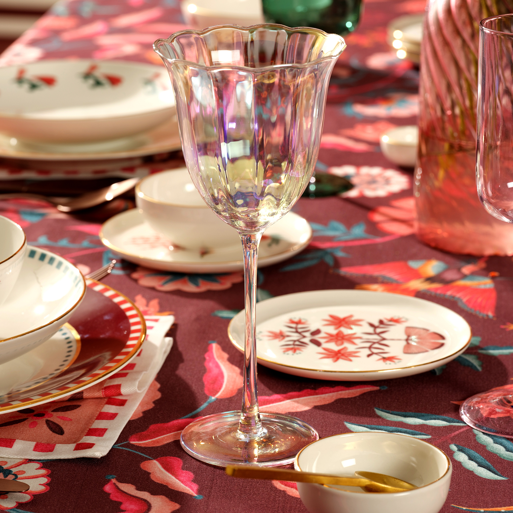 Gökkuşağının tüm renklerini Loess optikli cam kırmızı şarap kadehi ile sofralarınıza davet edin! Maximalist koleksiyonunun enerjisini taşıyan bu stilize tasarım, optik deseni ve elektro kaplamasıyla adeta ışık şovuna imza atıyor. Her ortamda, her ışık altında farklı yansımalarla göz alıcı bir görsel şölen sunuyor. Klasik kırmızı şarap keyfinizi modern bir dokunuşla taçlandırmak için tasarlanan Loess, başlı başına içecek keyfinizi unutulmaz bir hale getiriyor. 400 ml kapasitesi ve deneyimli cam ustalarının titiz işçiliğiyle üretilen bu kadeh hem estetiği hem de işlevselliği mükemmel bir dengeyle buluşturuyor