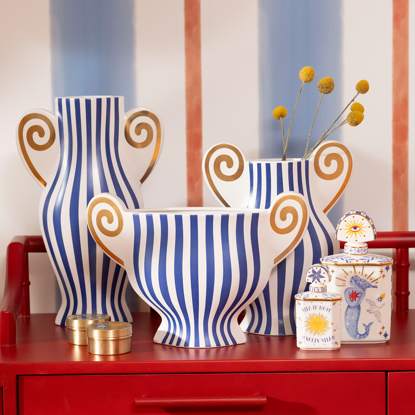 Zsa Zsa Zsu’nun Blue koleksiyonuna ait Longhu Seramik Vazo, mavi ile beyazın mitolojik birlikteliğini modern bir formda yorumluyor. Adını “ejderha gölü” anlamına gelen eski bir Çin efsanesinden alan Longhu, gücün ve zarafetin iç içe geçtiği sembolik bir obje. Mavi tonlar, deniz tanrılarının kudretini ve gökyüzünün dinginliğini çağrıştırırken; altın detaylar, bu enerjiyi güneşle buluşturur. El işçiliğiyle üretilen seramik gövdesi, antik tapınakların mistik dokusunu ev dekorasyonuna taşır.