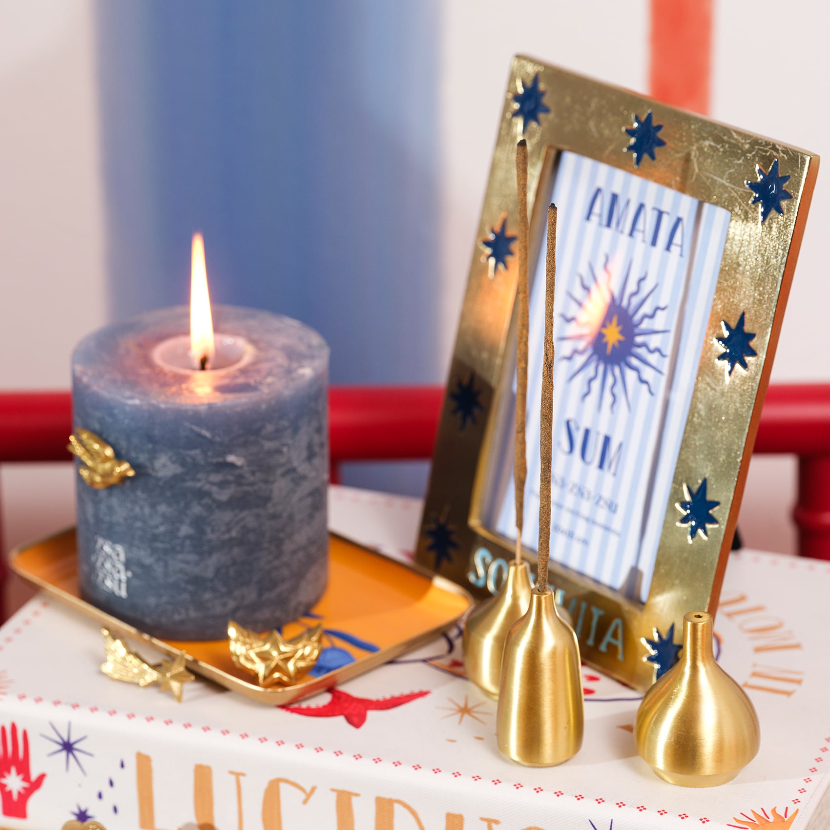 Lotus Pirinç Tütsü Tutucu 3x3x6 Cm Mat Altın