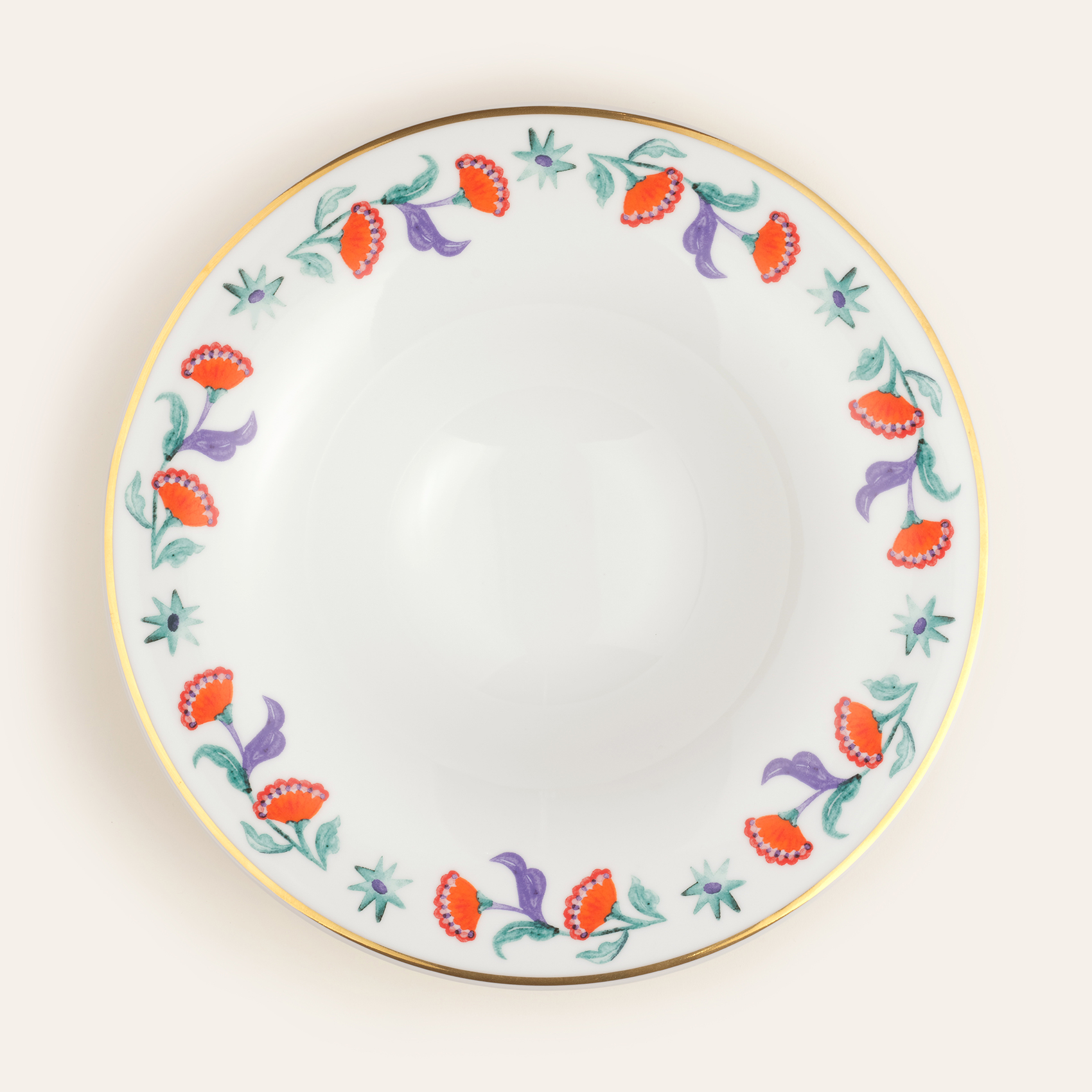 Lublin altın yaldızlı porselen makarna tabağı, sofraya zarafetle birlikte ilham dolu bir ruh getiriyor. Altın kenarları göz alıcı bir parıltı sunarken, Maximalist desenleri özgürlüğün ve coşkunun izini taşıyor. Her öğünü küçük bir kutlamaya dönüştüren bu 30 cm’lik parça, hem gündelik sofralarda hem de özel davetlerde hayat buluyor. Renklerin peşinden giden tasarımıyla sofranıza sürpriz, canlılık ve sınırsız hayal gücü katıyor. Polonya’da üretilmiştir.