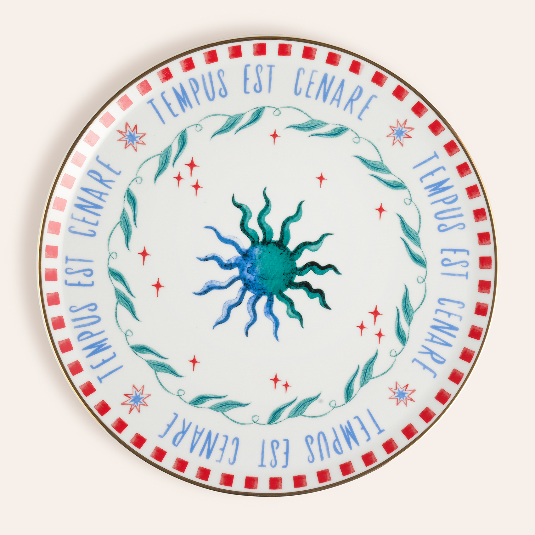 Lublın Porselen Pizza Tabağı 33x33x1.5 Cm Mavi - Yeşil