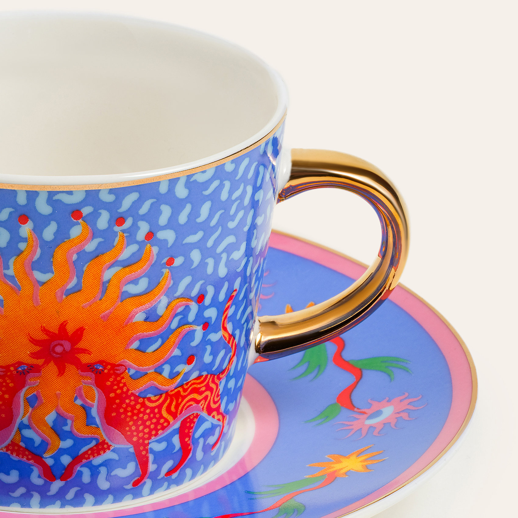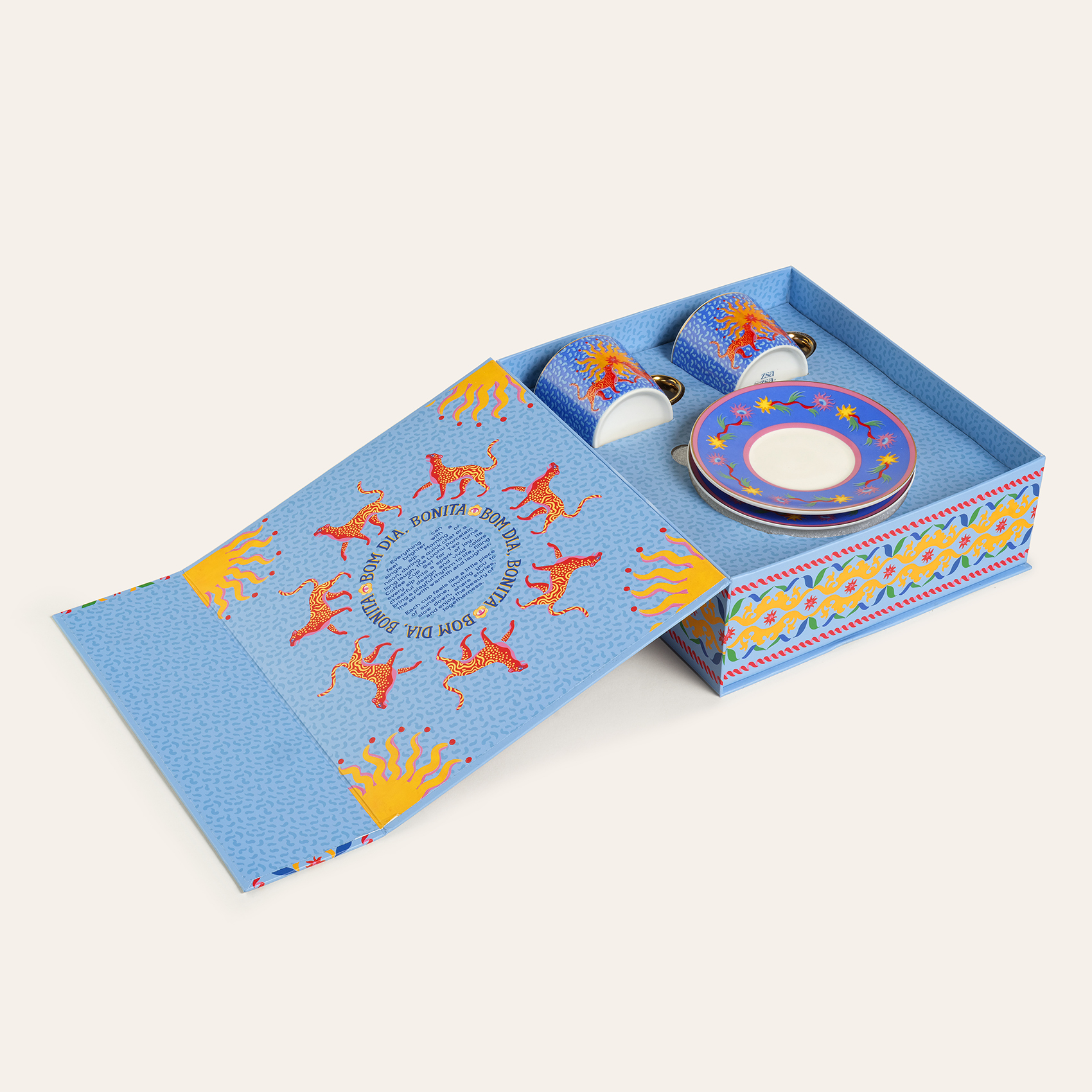 Hayat, paylaştıkça güzelleşiyor. Luohu Porselen Kahve Seti, tam da bu anlar için var. İlham dolu tasarımıyla neşeyi, rengi ve iyi hisleri çoğaltıyor. Kutunun içinde iki adet 90 ml fincan ve iki altlık bulunuyor; her biri Maximalist koleksiyonunun oyuncu, enerjik ve pozitif ruhunu taşıyor. Pembe zemin mutluluğun sıcaklığını yansıtıyor. Mavi leopar figürü özgüveni simgeliyor, “Bom Dia, Bonita” mesajıysa her bakışta içten bir gülümseme uyandırıyor. Altın detaylarsa fincanlara kutlama ışıltısı katıyor, tıpkı paylaşılan kahvelerin yarattığı o tatlı yakınlık gibi. Birlikte geçirilen anlara biraz renk, güne keyifli bir başlangıç ya da sevdiklerine iyi enerjili bir armağan… Luohu, kahve keyfini her defasında küçük bir mutluluk ritüeline dönüştürüyor.