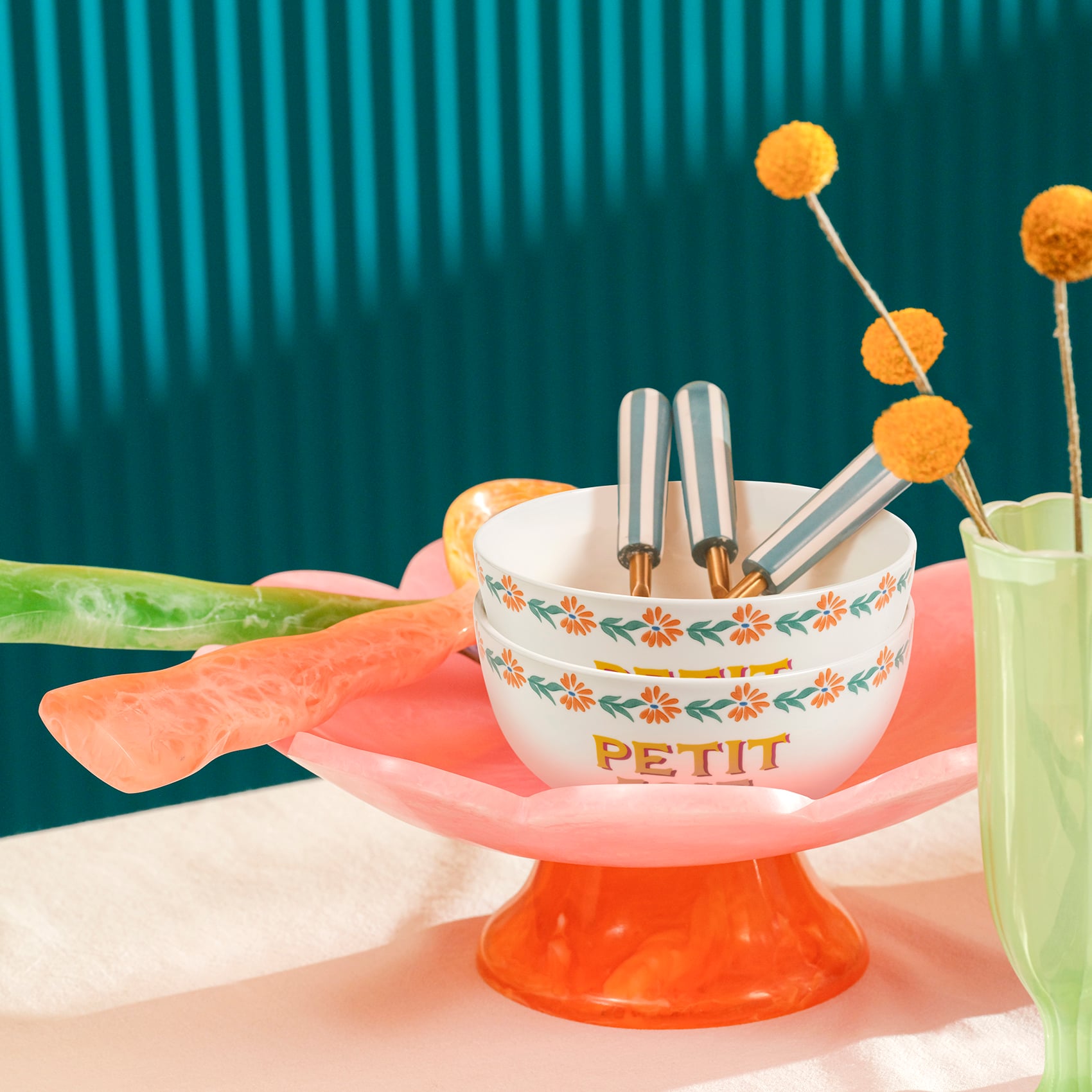 Luohu Porselen Kase, Heritage koleksiyonunun geçmişten beslenen dünyasını canlı renkler ve oyunlu detaylarla yeniden kuruyor. Üzerindeki desenler ve tipografik dokunuşlar, sofraya hafif, keyifli ve karakterli bir ifade kazandırıyor. Zsa Zsa Zsu yaratıcı ekibinin imzasını taşıyan Luohu, gündelik kullanımlarda bile masaya ritim ve enerji katıyor. Tek başına dikkat çeken bir parça olarak ya da serinin diğer tasarımlarıyla birlikte kullanıldığında, sofrada özgür ve neşeli bir atmosfer yaratıyor.