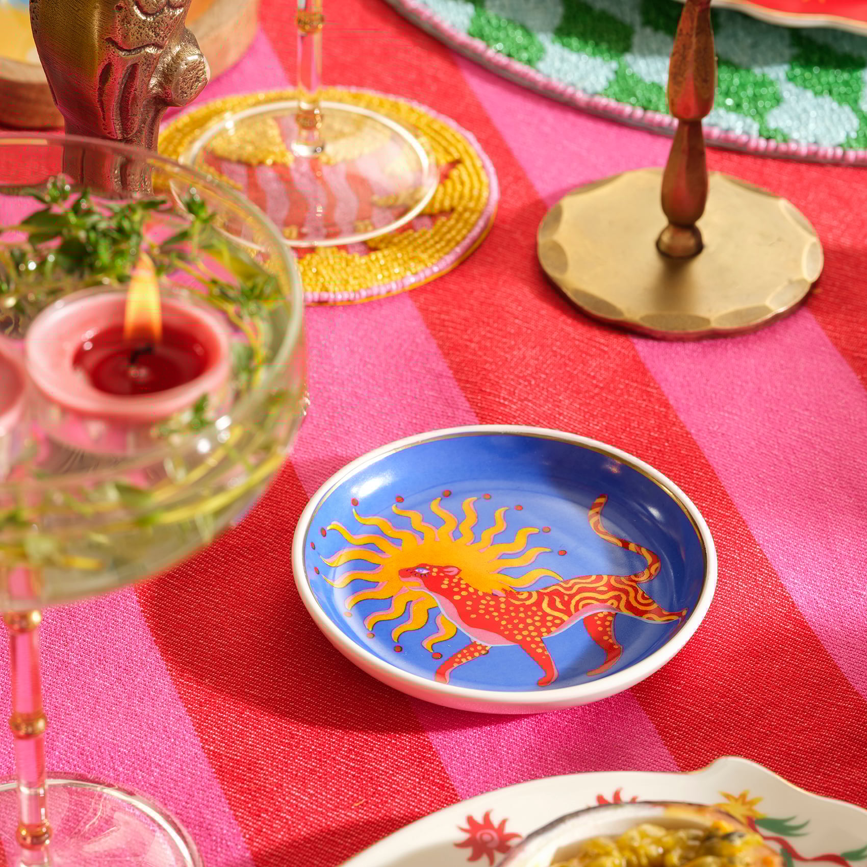 Luohu Porselen Tabak, 10 cm ölçüsüyle masadaki en keyifli küçük dokunuşlardan biri. Maximalist koleksiyonun özgür ve oyunbaz ruhunu taşıyan bu tasarım, sofrada samimi ve davetkâr bir atmosfer yaratıyor. Ekmek dilimleri, zeytinler, küçük atıştırmalıklar ya da kahvenin yanına eşlik eden minik tatlılar için ideal bir mini tabak. Sofrada dolaşan küçük lezzetlere eşlik eden bu porselen parça, bulunduğu masaya sıcak, neşeli ve paylaşım hissi taşıyan bir enerji katıyor.