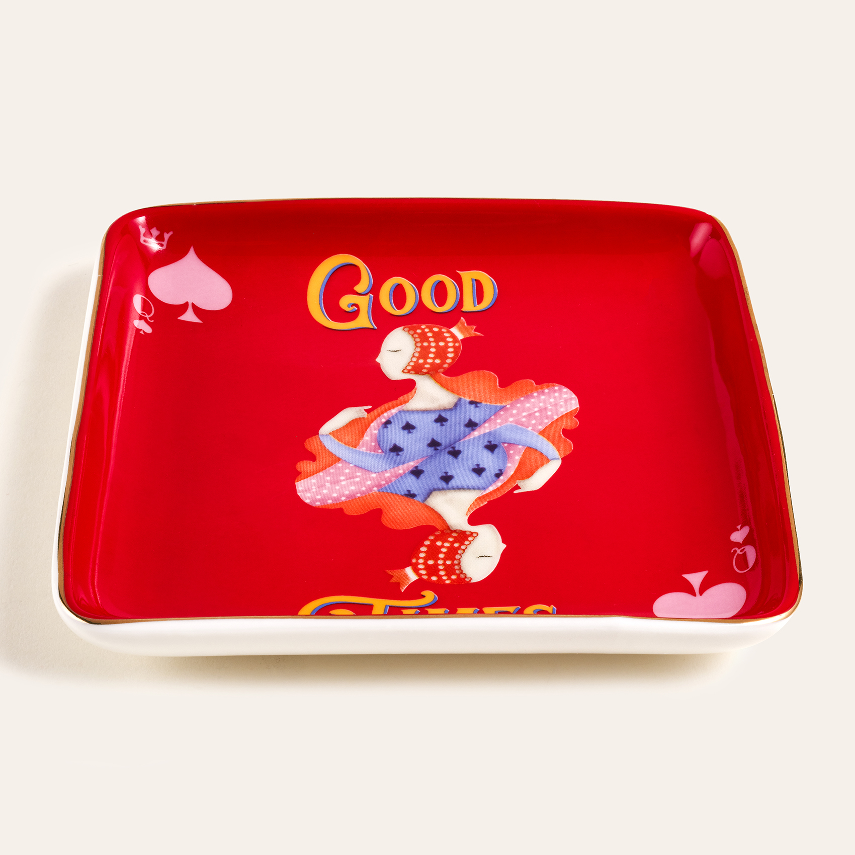 Şansın sürprizleri, oyunun eğlencesi ve yeni başlangıçların heyecanı… Cheerland koleksiyonunun bir parçası olan Luohu porselen kare tabak, Zsa Zsa Zsu tasarımcılarının yorumladığı oyun kartı figürleriyle sofralarınıza farklı bir kutlama ruhu katıyor. Renklerin dansı altın vurgularla birleşirken, her kare tabak küçük bir sunumu bile koca bir festival anına dönüştürüyor. Dayanıklı porselen malzeme ve yüksek ısıda uygulanan özel dekal işçiliği uzun ömürlü bir zarafet sağlıyor. Her bakışta yeni bir hikâye fısıldayan bu tabak, kutlama sofralarının en eğlenceli tamamlayıcısı oluyor.