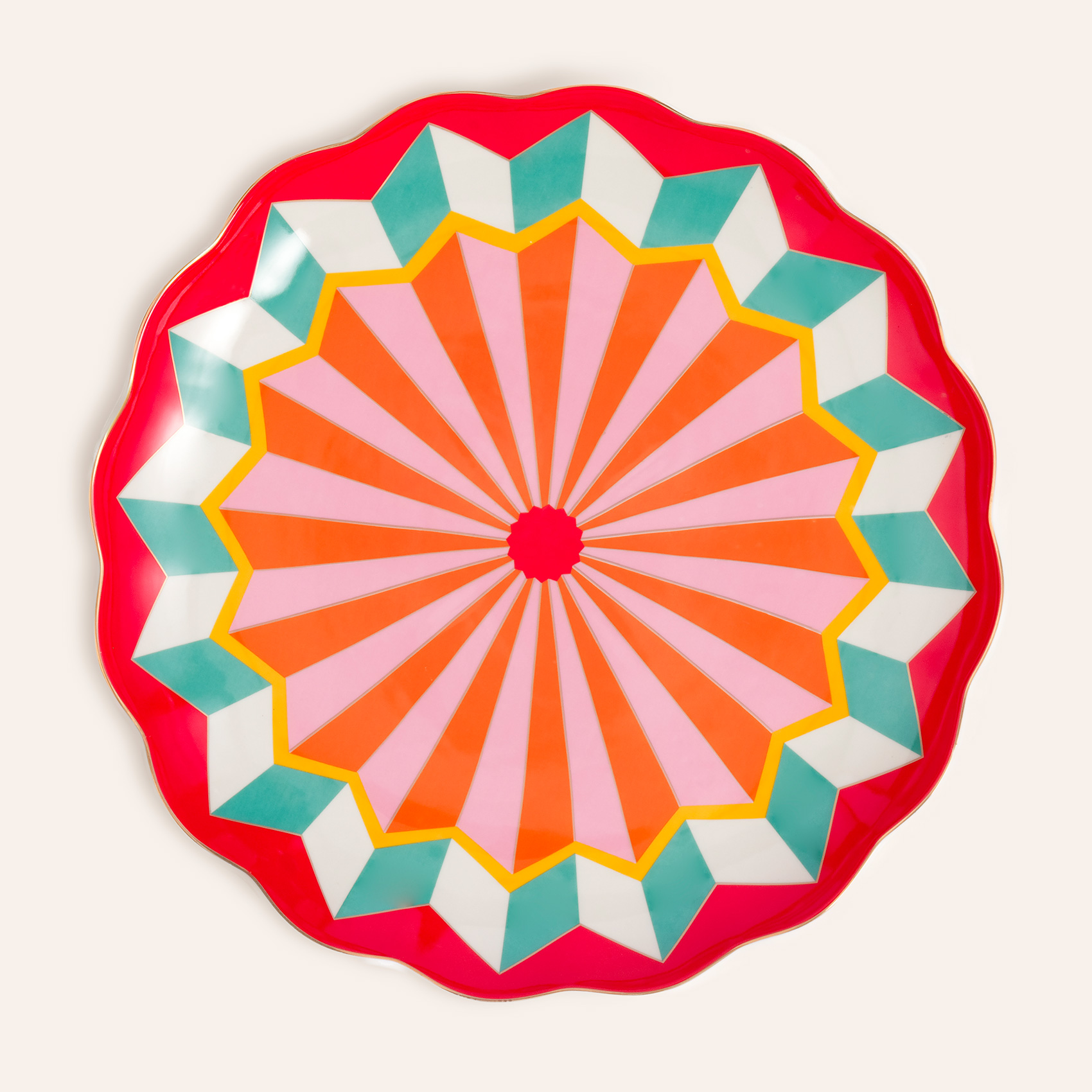 Luohu porselen yemek tabağı, Cheerland koleksiyonunun ruhunu sofralara taşıyarak adeta bir neşe festivaline davet ediyor. Canlı renklerin cesur kontrastı ve ışığı andıran geometrik desenleri, sofranıza dinamizm değil rengarenk bir uyum getiriyor. Altın yaldızlı hatlarla çerçevelenen tasarım, sıradan bir öğünü bile ışıldayan bir anıya dönüştürüyor. Dayanıklı porselen üzerine yüksek ısıda uygulanan özel dekal tekniği, bu zarafeti uzun ömürlü kılıyor. Luohu yemek tabağı, rengarenk sofralarda yeni başlangıçları kutlamak için mükemmel bir eşlikçi.