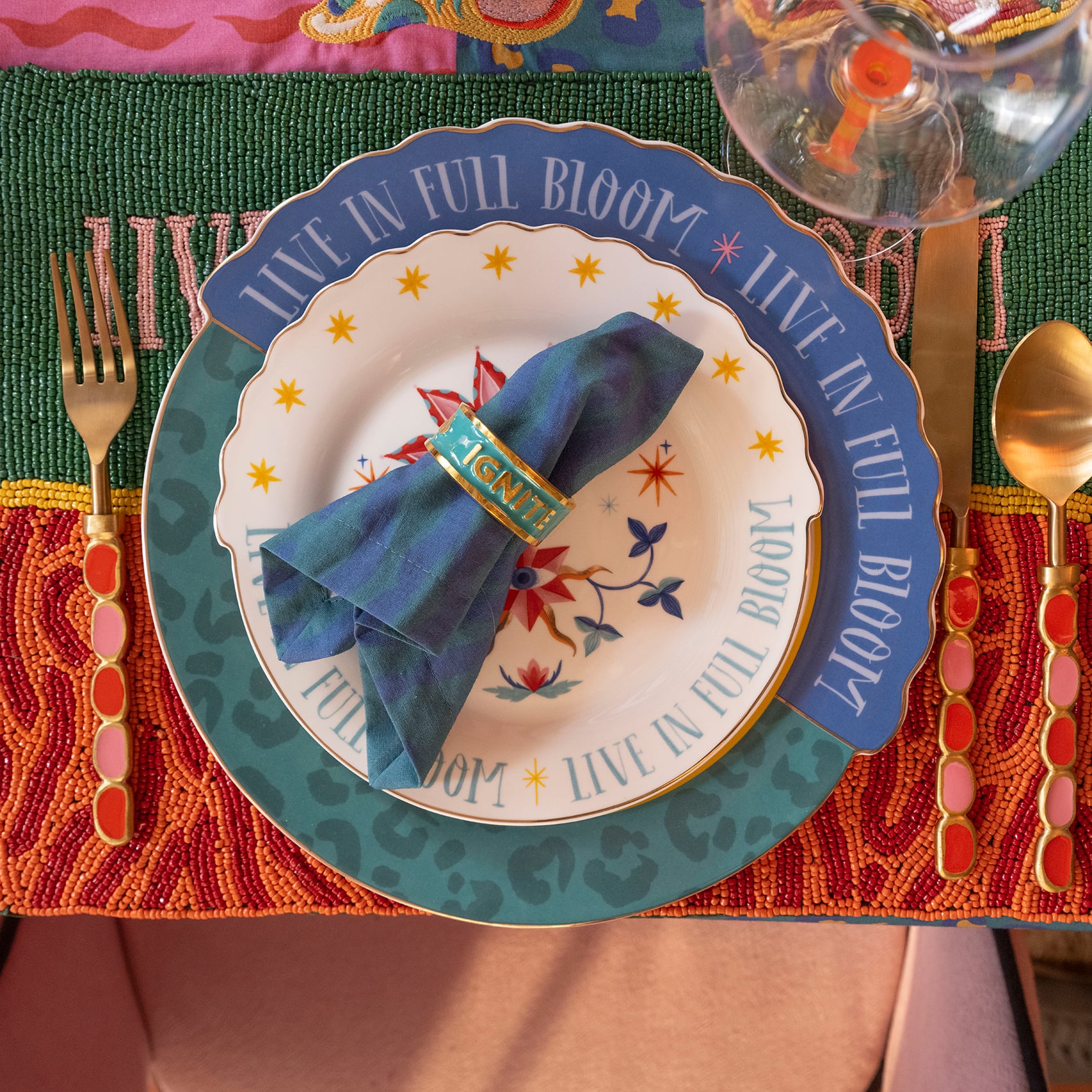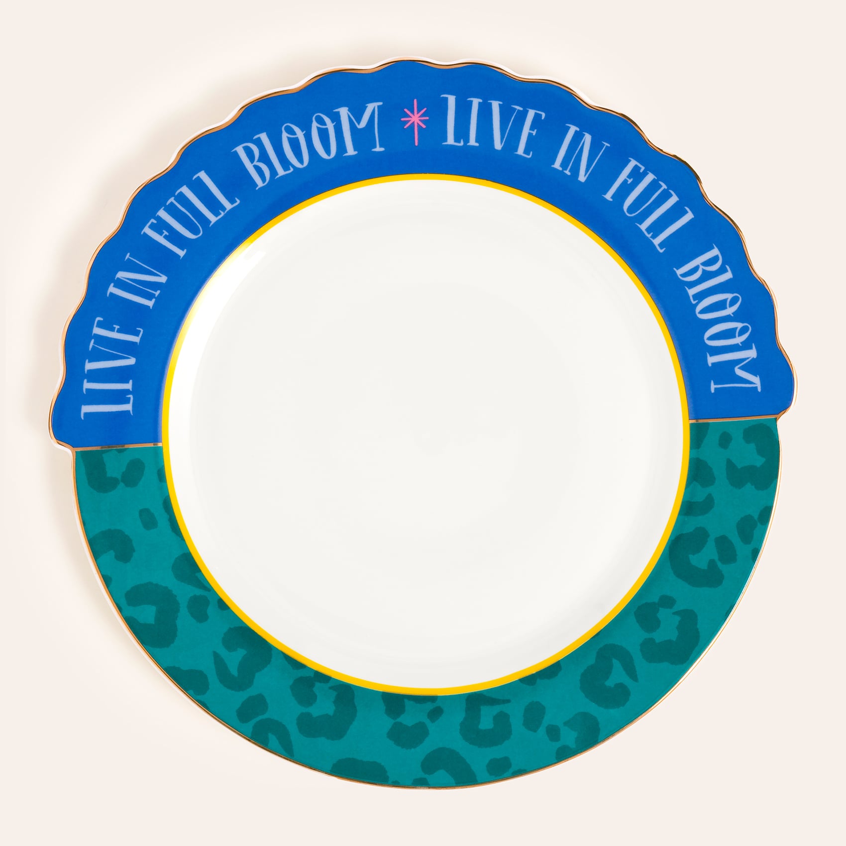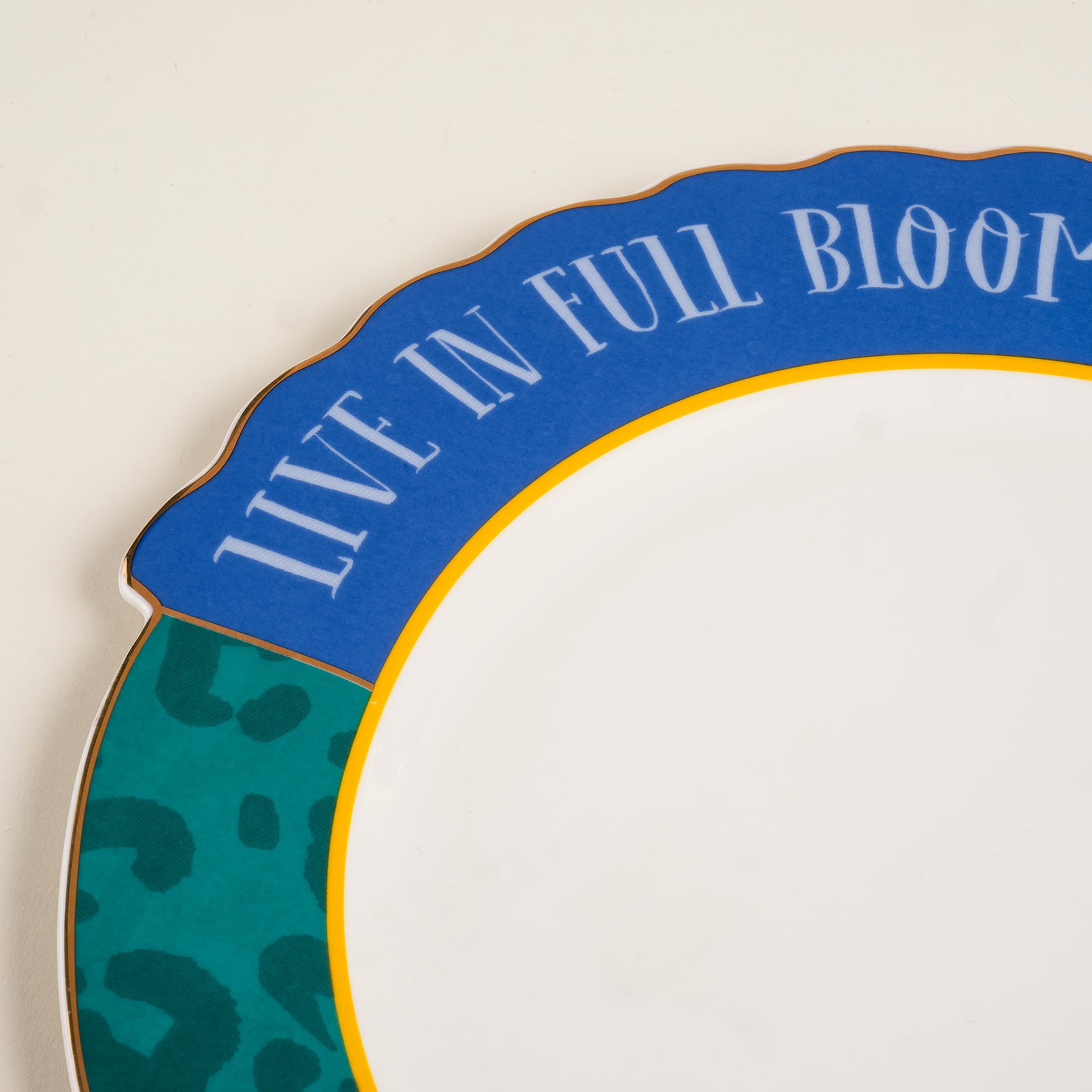 “Live in Full Bloom” mesajıyla sahneye çıkan Luohu servis tabağı, Maximalist ruhun sofranızdaki en canlı ifadesi. Mavi ve yeşilin çarpıcı kontrastı, altın hatlarla birleşerek sofrada göz alıcı bir dinamizm yaratıyor. Leopar desenli yüzeyi beklenmedik bir oyun katıyor, porselenin zarif yapısı ise tasarımı sofistike bir dengeye taşıyor. Bu tabak, yemek sunumlarını sıradanlıktan çıkarıp sofrayı adeta renkli bir festival alanına dönüştürüyor. Dayanıklı porselen malzemesi, yüksek ısıda uygulanan özel dekalle buluşarak uzun ömürlü bir şıklık sunuyor.