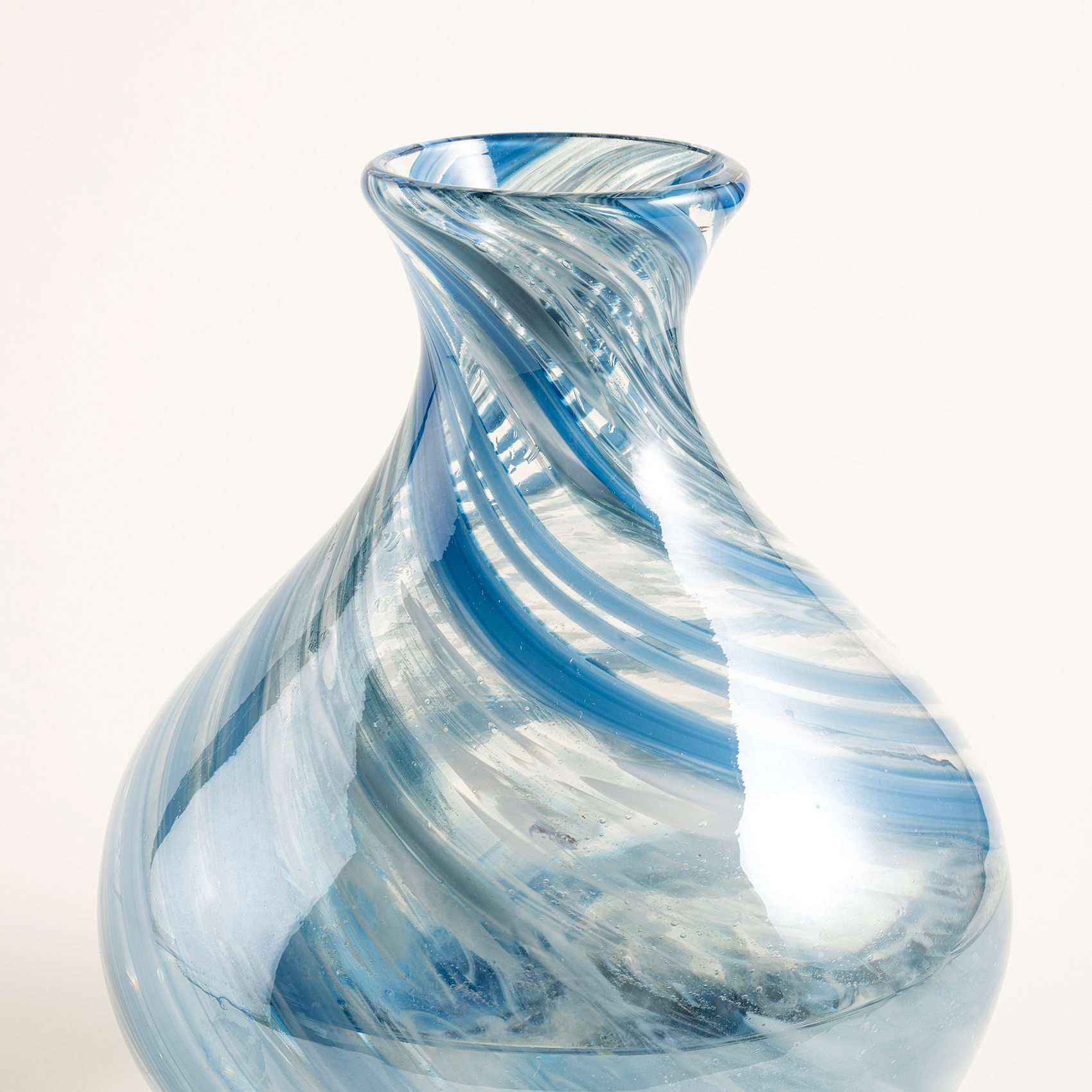 Blue koleksiyonunun denizlerden ilham alan lüks duygusunu yaşatan Macau, deneyimli cam ustaları tarafından geleneksel yöntemlerle elde üretiliyor. Macau’nun üfleme borusunun ucunda bir baloncuk olarak başlayan serüveni, cam soğumadan önce zanaatkârlar tarafından elde şekillendirilmesiyle devam ediyor. Baştan sona el işçiliğiyle üretilen bu vazo, formu ve desenleriyle eşsizdir.