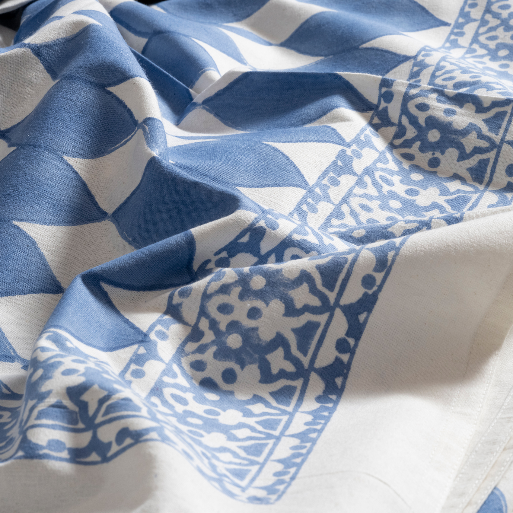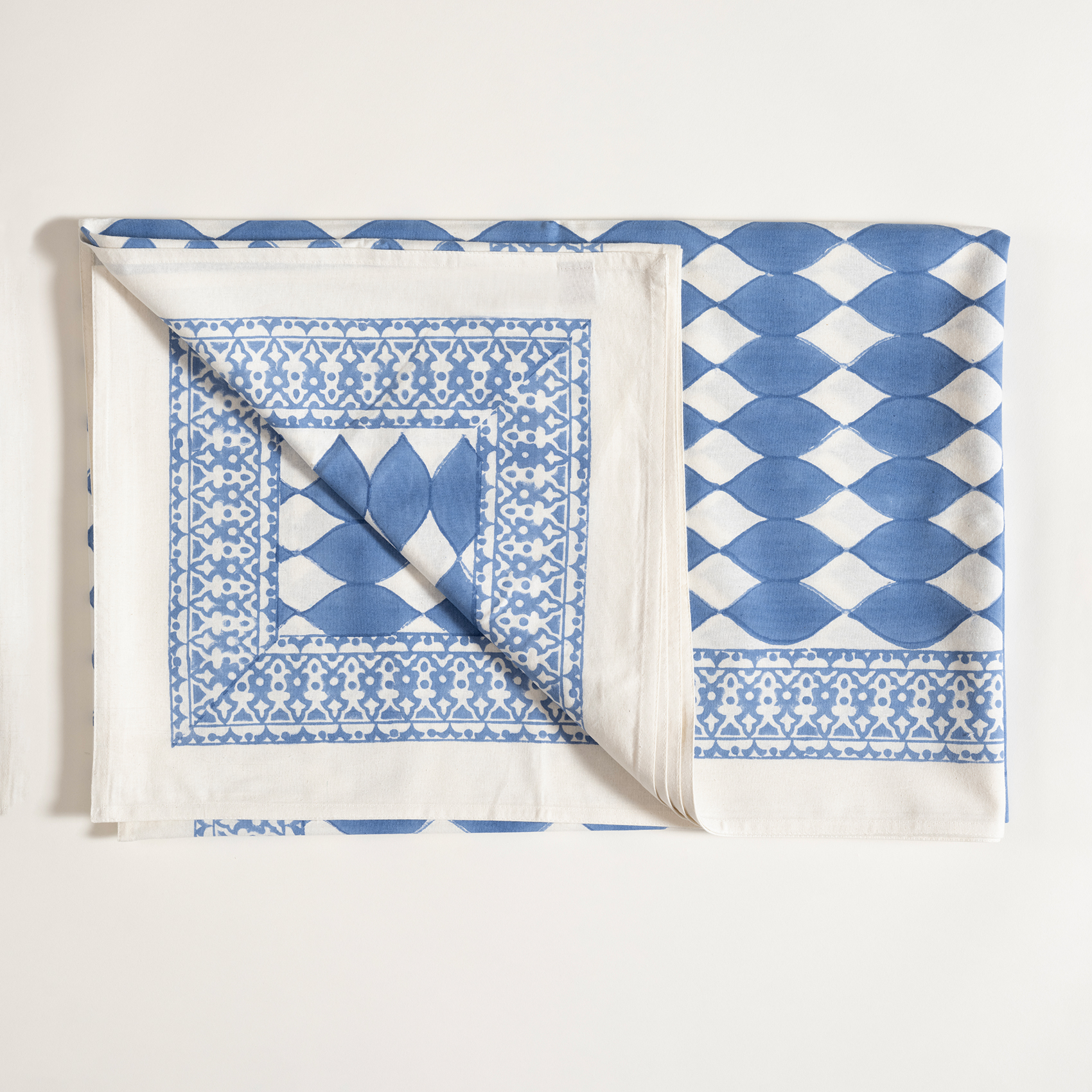 Maotha El Baskısı Pamuk %100 Pamuk Masa Örtüsü 160x240 Cm Mavi