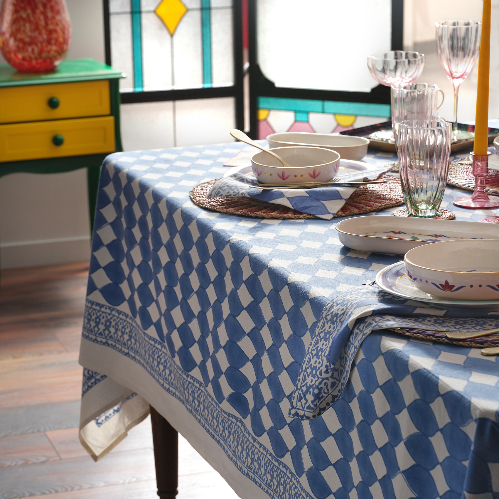 Maotha masa örtüsünün desenleri, Hintli artizanlar tarafından geleneksel ahşap blok baskı tekniğiyle tek tek kumaşa işleniyor. Elde üretildiği için desenlerde ve renklerde farklılıklar olabilir. Sofralarınızda el işçiliğinin başrolde olduğu eşsiz bir sahne yaratan bu masa örtüsü %100 pamuk kumaş içeriğiyle sürdürülebilirdir.