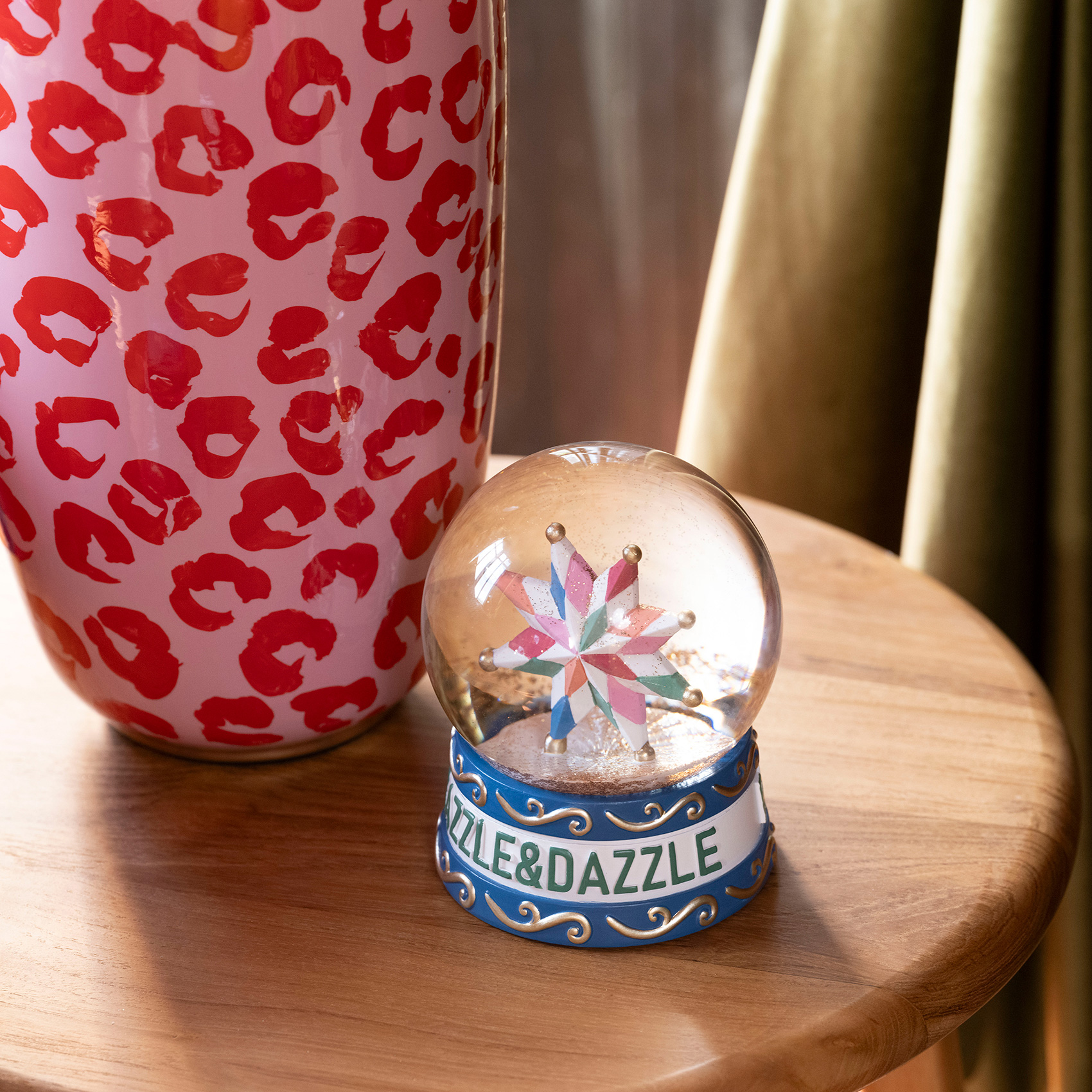 Cheerland koleksiyonunun en göz alıcı parçalarından Meilin cam dekoratif küre, masalsı kutlamaların rengârenk enerjisinden ilham alıyor. İçinde yer alan yıldız figürü, mavi ve altın işlemeli tabanıyla birleşerek bulunduğu her köşeyi ışık saçan bir sahneye dönüştürüyor. Deneyimli ustaların el işçiliğiyle üretilen bu dekoratif cam küre, Zsa Zsa Zsu’nun renkli ve oyunbaz ruhunu ev dekorasyonuna taşıyor. Cheerland koleksiyonu imzası taşıyan Meilin cam dekoratif küre, yaşam alanlarına kattığı ışıltıyla hayatın her anını göz kamaştıran küçük bir kutlamaya dönüştürüyor.