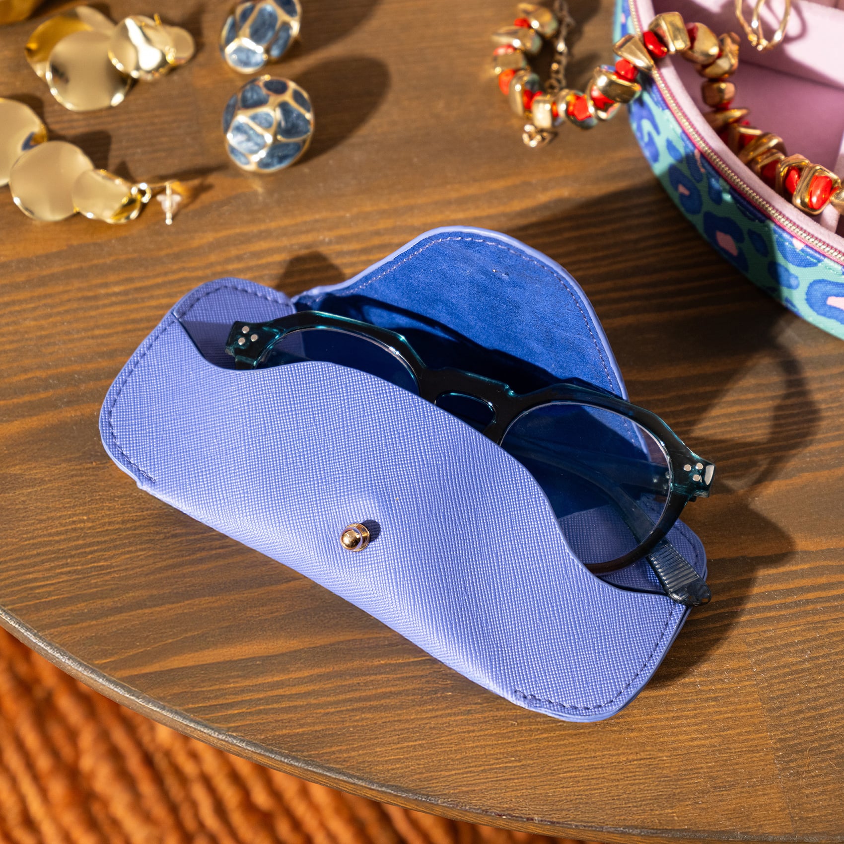 Işıltıyı sevenlere, yıldızlarla süslenmiş bir dokunuş. Maximalist koleksiyonunun parlayan üyelerinden Meilin gözlük kutusu, metalik altın baskıları ve zarif silüetiyle aksesuarlarınıza eşlik ediyor. PVC dış yüzeyi dayanıklılığını korurken, iç kısmı gözlüğünüzü özenle saklamak için tasarlandı. Çantanızda kolayca yer bulur, elinizde ise tarzınıza imza atar. Güneşli günlerin vazgeçilmez tamamlayıcısı. Temizlemeniz gerekiyorsa nemli bir bezle silmeniz yeterli.
