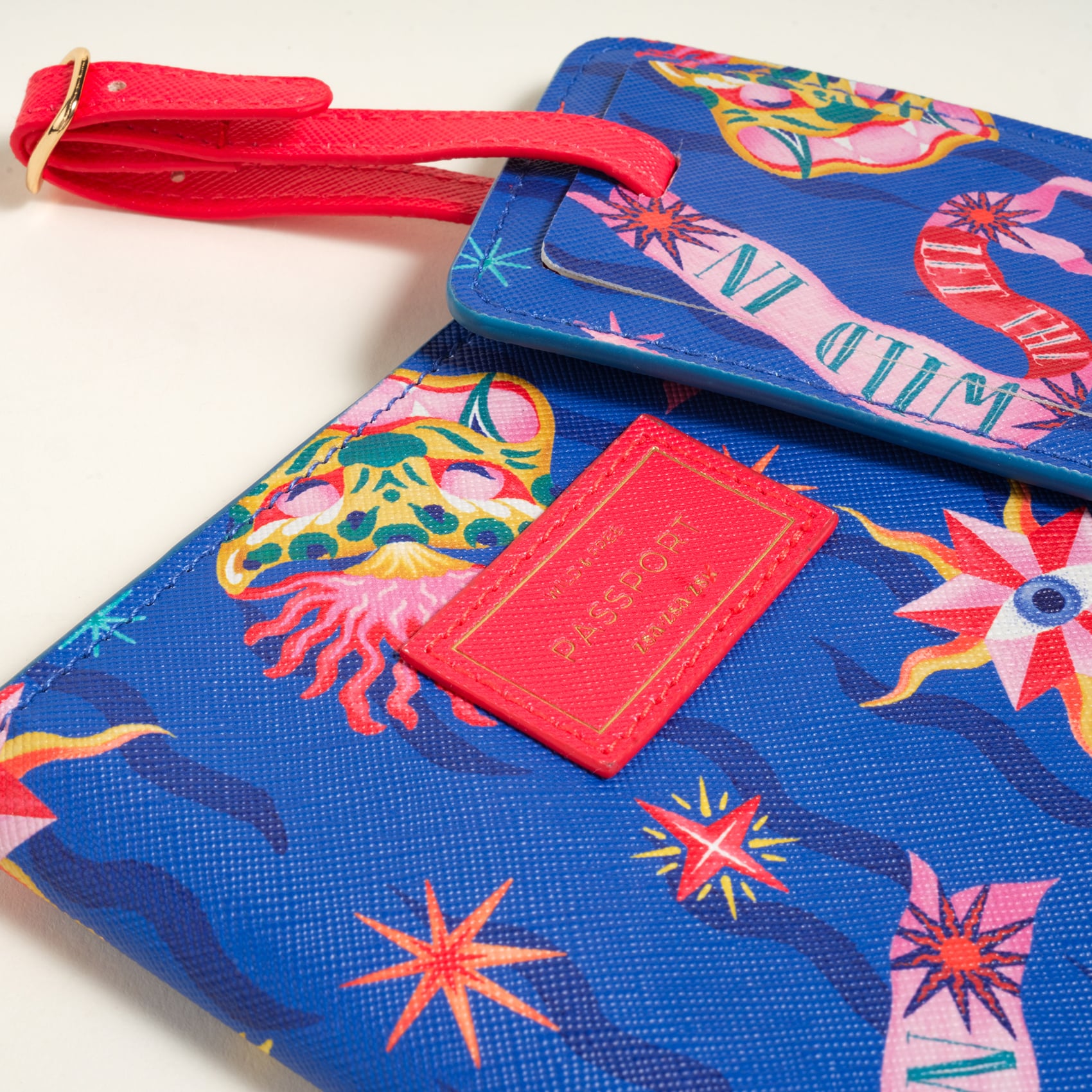 Maximalist koleksiyonun mod yükselten dünyasından ilham alan bu seyahat seti, pasaport kılıfı ve valiz etiketiyle yolculuklarınıza stil katıyor. Hayal gücünü harekete geçiren desenleri, canlı renkleri ve göz alıcı detaylarıyla valizinize çarpıcı bir imza atıyor. Pasaport kılıfı belgelerinizi şıklıkla sararken, valiz etiketi valizinizi kalabalıklar içinde parlatıyor. PVC malzemeden üretildi. Formunu koruyor, enerjisini valizinize bulaştırıyor.