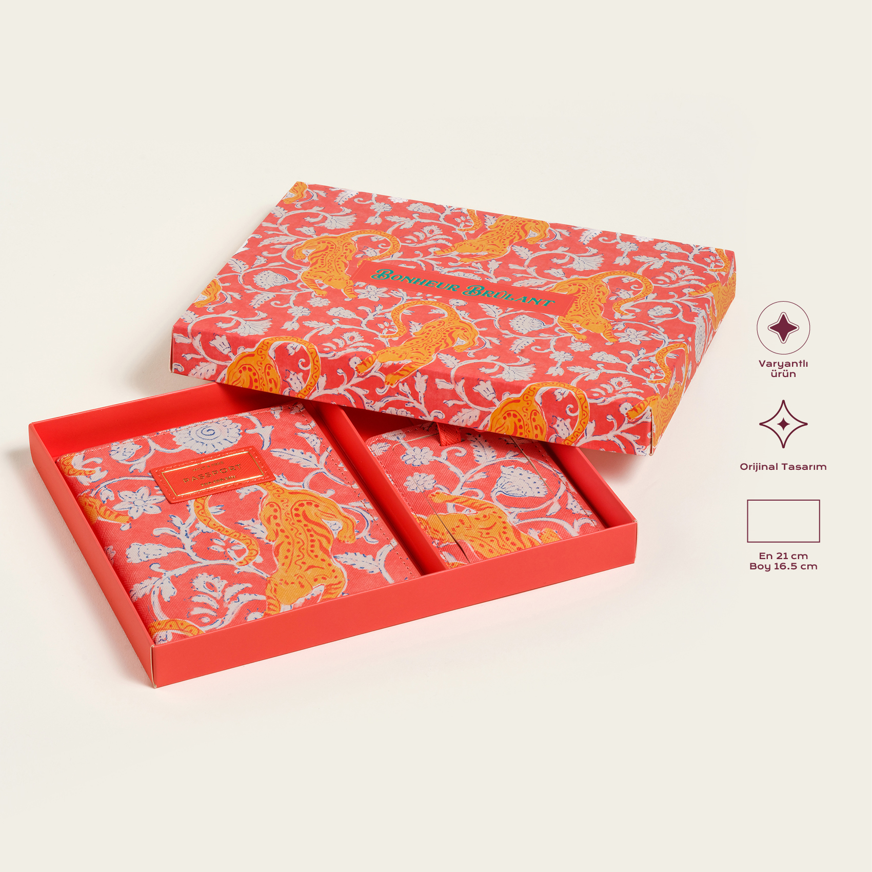 Bir yolculuk hayal edin… Valizinizin üzerinde pastel tonlarda bir etiket, elinizde otantik desenlerle süslenmiş zarif bir pasaport kılıfı. Heritage koleksiyonunun sofistike dünyasından gelen Meilin seyahat seti, sizi bir yerden bir yere taşırken geçmişle bugünün stil dolu buluşmasına da eşlik ediyor. Zarif çiçek motifleri yumuşak pastel tonlarla buluşuyor, eklektik dokular her detaya karakter katıyor. Pasaport kılıfı belgelerinizi zarafetle sarıyor. Valiz etiketi valizinize zamansız bir ifade kazandırıyor.