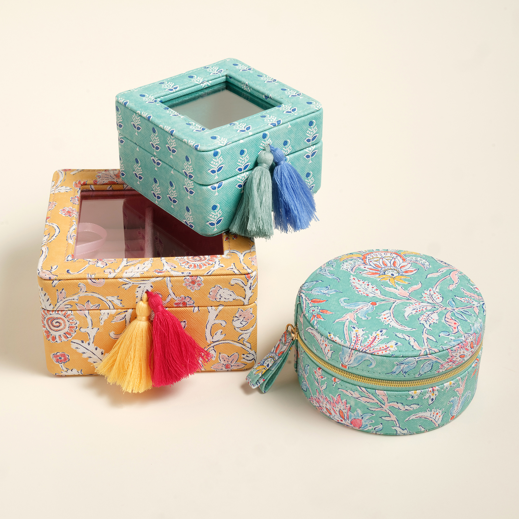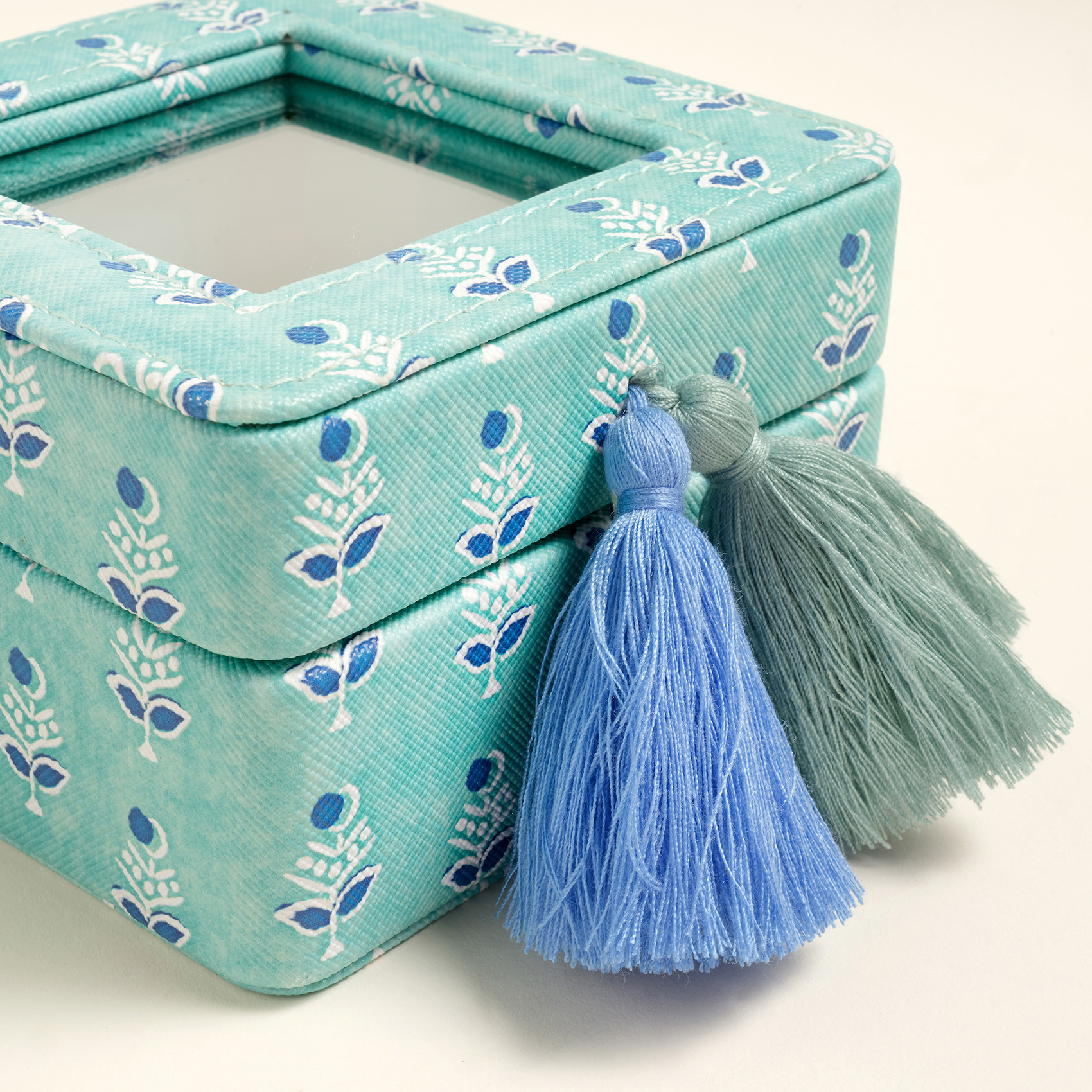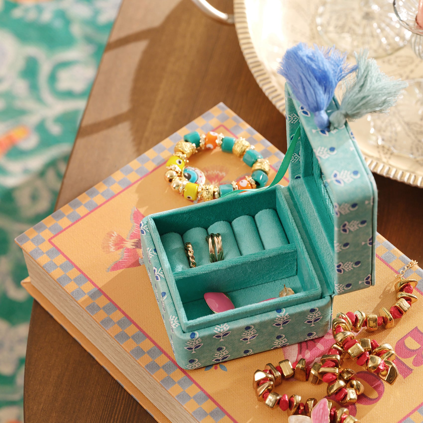 Her ayrıntısıyla ilham veren bir obje… Heritage koleksiyonunun karakteristik desenleriyle kaplı Meilin takı kutusu, takılarınızı saklamanın en stil sahibi yolunu sunuyor. Üst kısmındaki aynası ve renkli püskül detayıyla hem nostaljik hem oyuncu bir ruh taşıyor. PVC dış yüzeyi formunu korurken, iç kısmındaki MDF yapı ve kadife kaplama zarif eşyalarınız için yumuşacık bir alan yaratıyor. Komodin üstünde, valiz içinde ya da hediye olarak… Meilin her yerde fark yaratır. Temizlemeniz gerekiyorsa nemli bir bezle silmeniz yeterli.