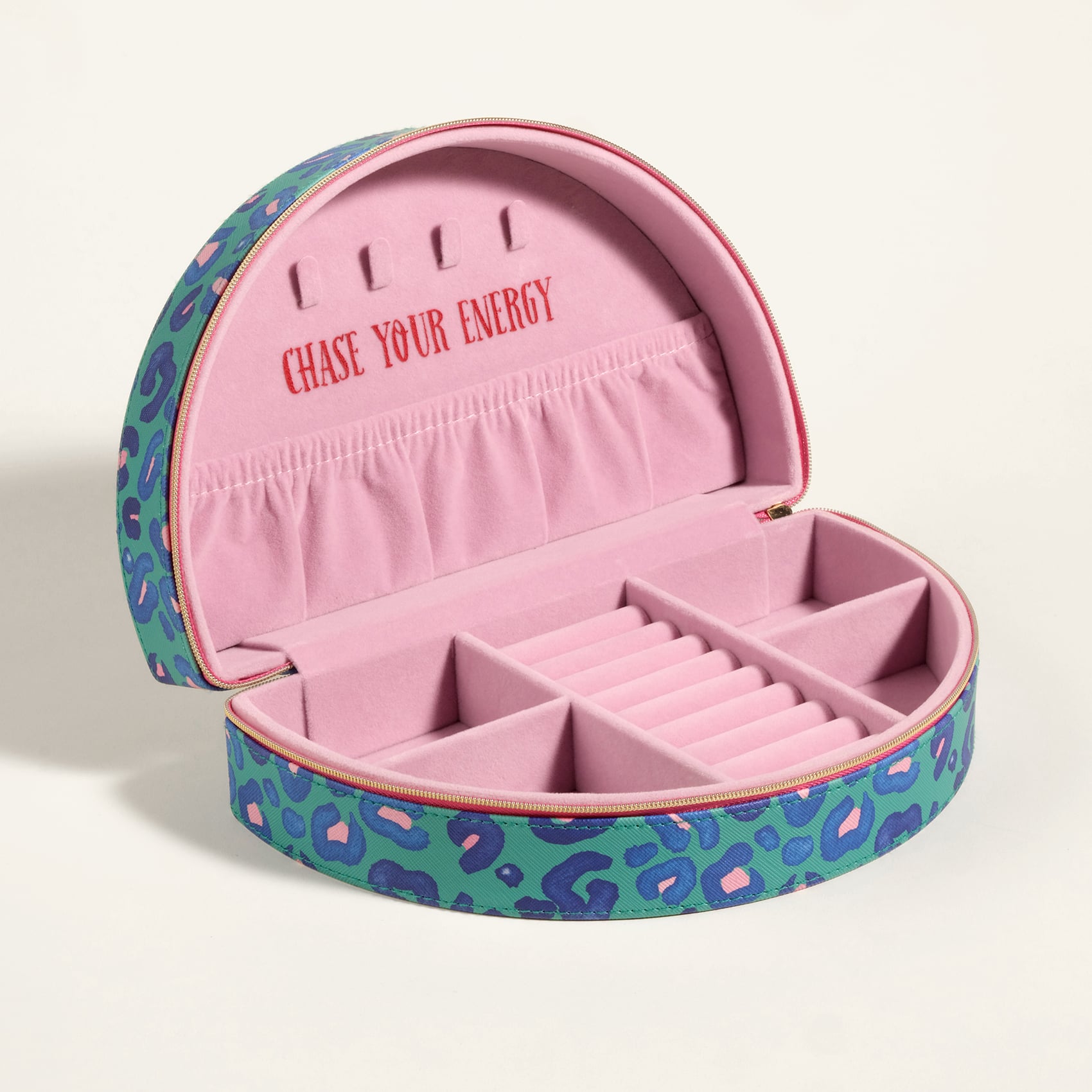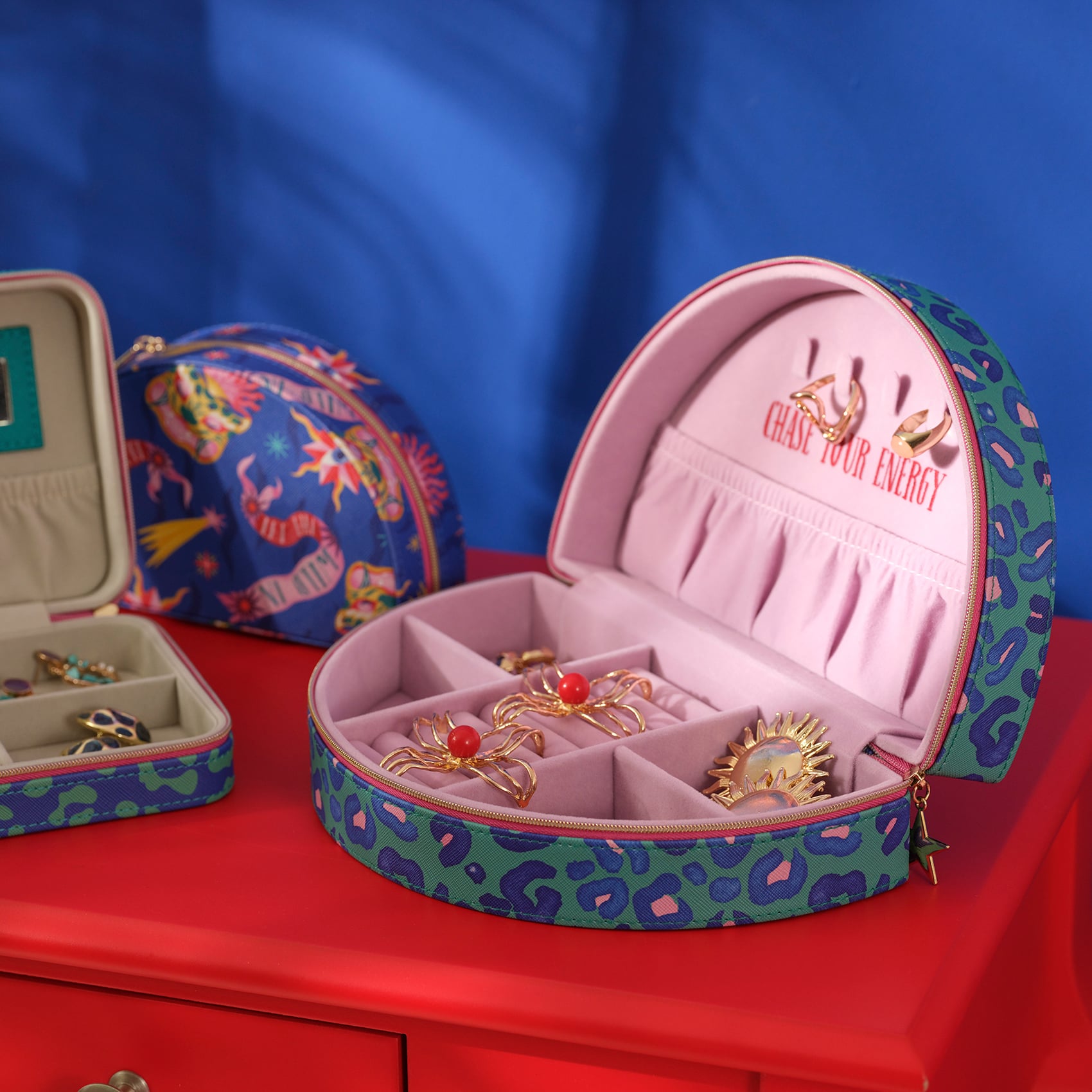 Meilin takı kutusu, şıklığı düzenden ayırmayanlar için tasarlandı. Pürüzsüz PVC yüzeyi zarif duruşunu korurken, kadife kaplı bölmeleri takılarınıza, anılarınıza ve size ait küçük mucizelere yumuşacık bir yuva sunar. Maximalist koleksiyonun yıldız ruhunu taşır: Kendinden emin, cesur ve sahneyi paylaşmayı pek sevmiyor. Çarpıcı desenleriyle bulunduğu her ortamın havasını değiştiriyor. Meilin renkleri saklamaz, onların içinde yaşar. Tıpkı sizin gibi.