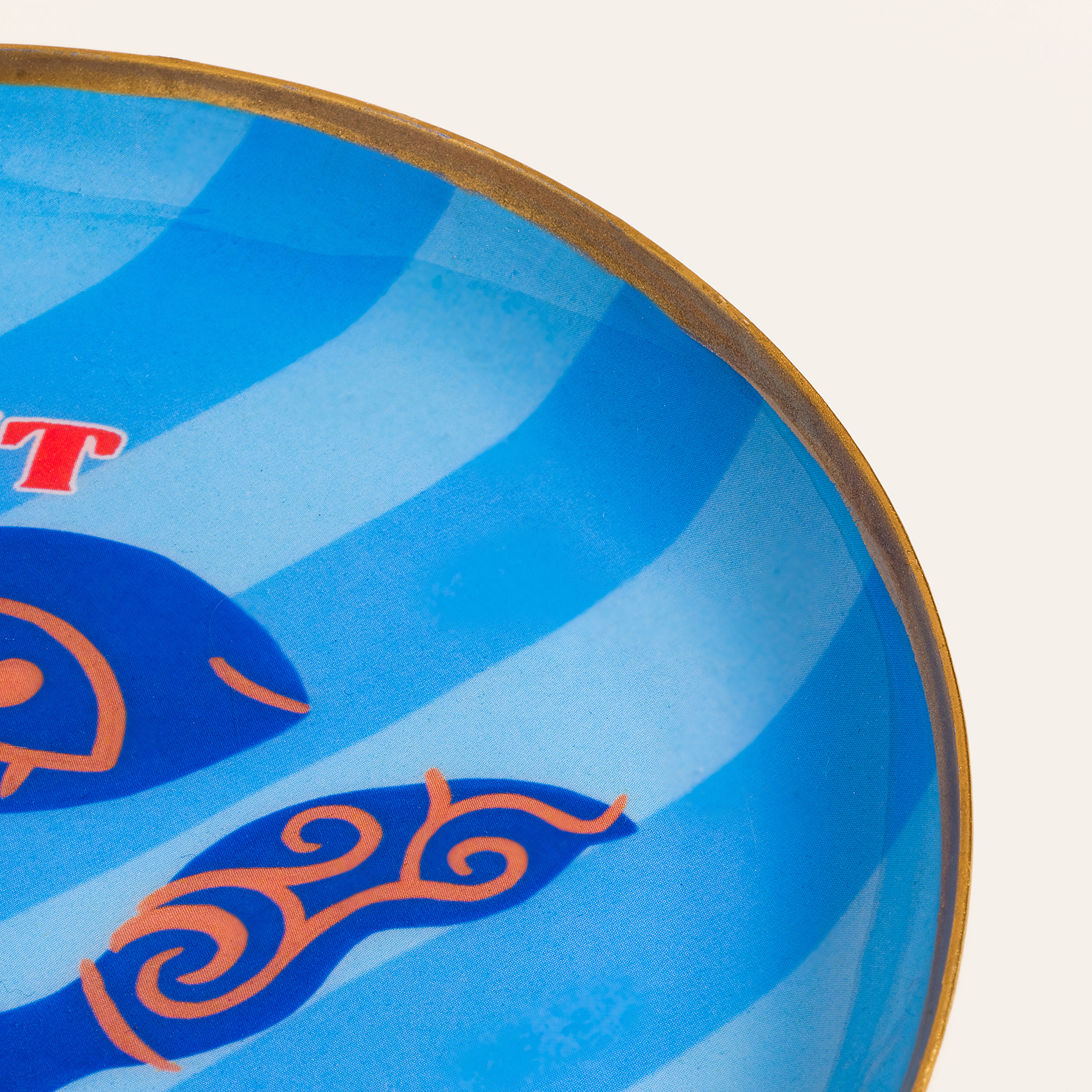 Dalgalar hareket ediyor, hiçbir şey sabit kalmıyor. Agra Tepsi, Blue koleksiyonunun akışkan ve canlı dünyasını yüzeye taşıyor; katman katman mavi tonları hareketi derinleştirirken, merkezdeki figür bu akışı sahipleniyor. “Vincit” detayı, bu akışın içinde kendine güvenli bir iz bırakıyor; sessiz ama kararlı bir ifade. Yuvarlak formu hareketi tamamlıyor, akışı kesintisiz bir döngüye dönüştürüyor. Hindistan’da demir yüzey üzerine uygulanan dekal tekniğiyle üretiliyor. Yüzeyi parlak, renk geçişleri net, etkisi doğrudan. Kahve sunumlarında, küçük anlarda ya da duvarda tek başına sergilendiğinde bulunduğu alana hareket katıyor. Agra, enerjisiyle öne çıkan, akışıyla bulunduğu yeri canlandıran; Blue koleksiyonunun İlkbahar Yaz 2026 sezonuna ait ilham dolu bir tasarım.