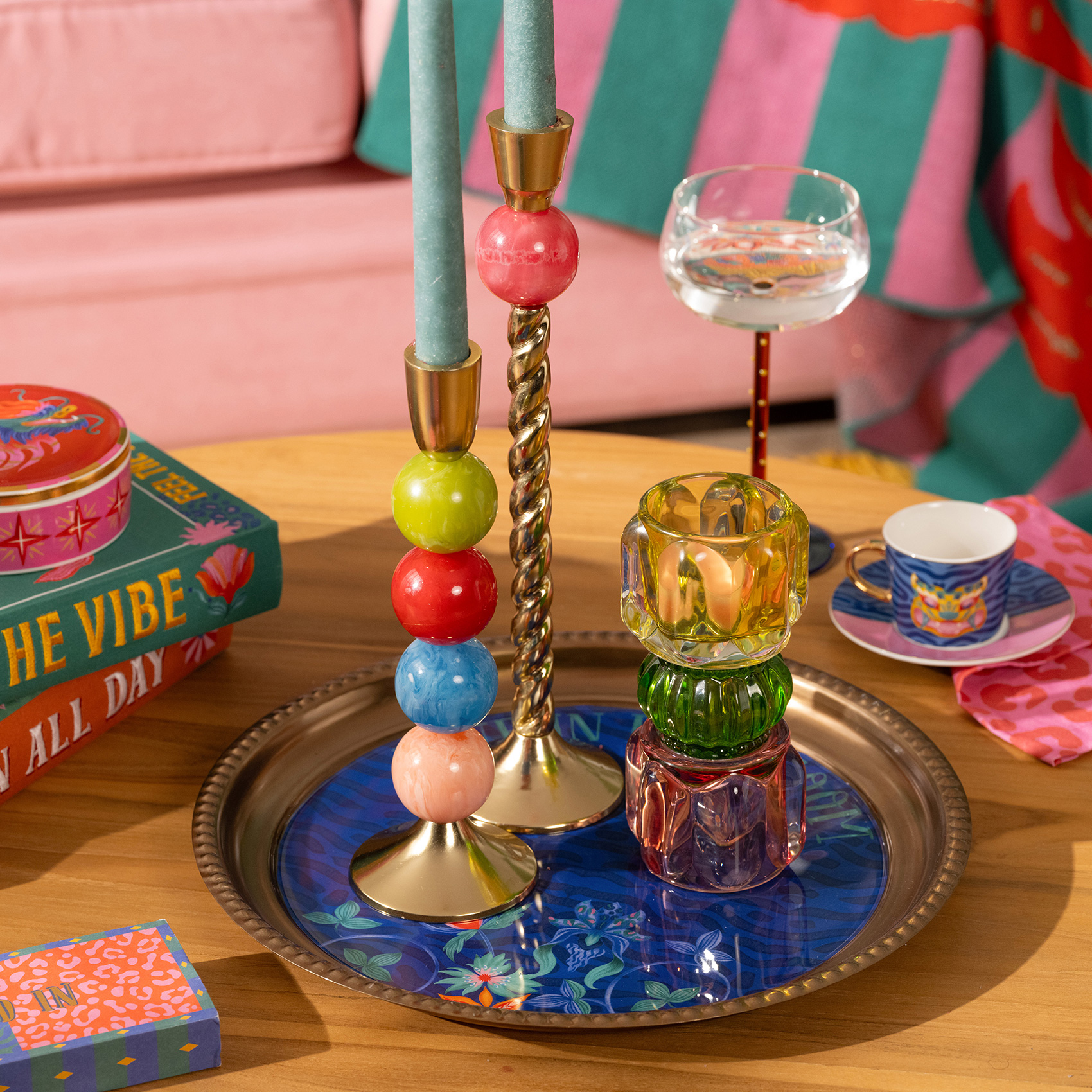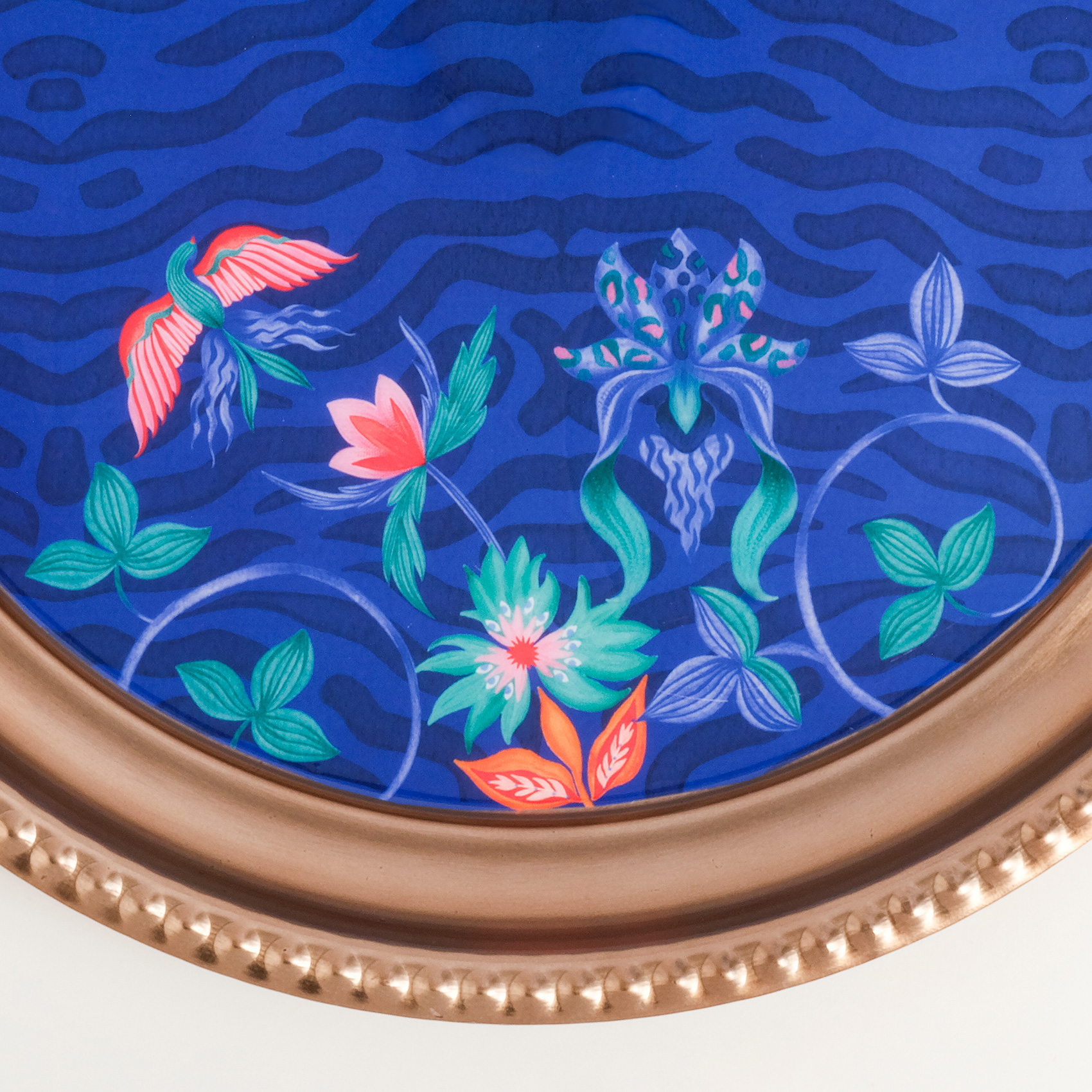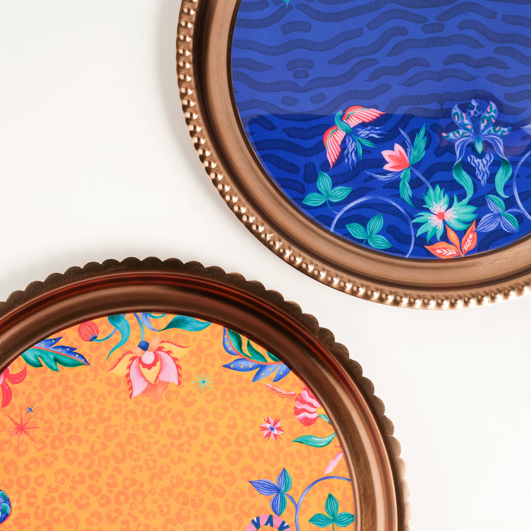 Nanpur desenli yuvarlak metal dekoratif tepsi, Maximalist dünyanın cesur ve oyunbaz ruhunu yansıtıyor. Zsa Zsa Zsu tasarımcılarının yorumladığı desenler, renklerin coşkusunu ve doğanın vahşi enerjisini sofralarınıza taşıyor. Altın dokunuşlarla parlayan yüzeyi, sıradan bir sunumu bile küçük bir kutlamaya dönüştürürken, Maximalist ifade gücü mekâna özgürlük ve neşe katıyor. Servislerde ya da dekoratif kullanımda, bu tepsi hayatı rengarenk yaşamanın en göz alıcı sembollerinden biri oluyor.