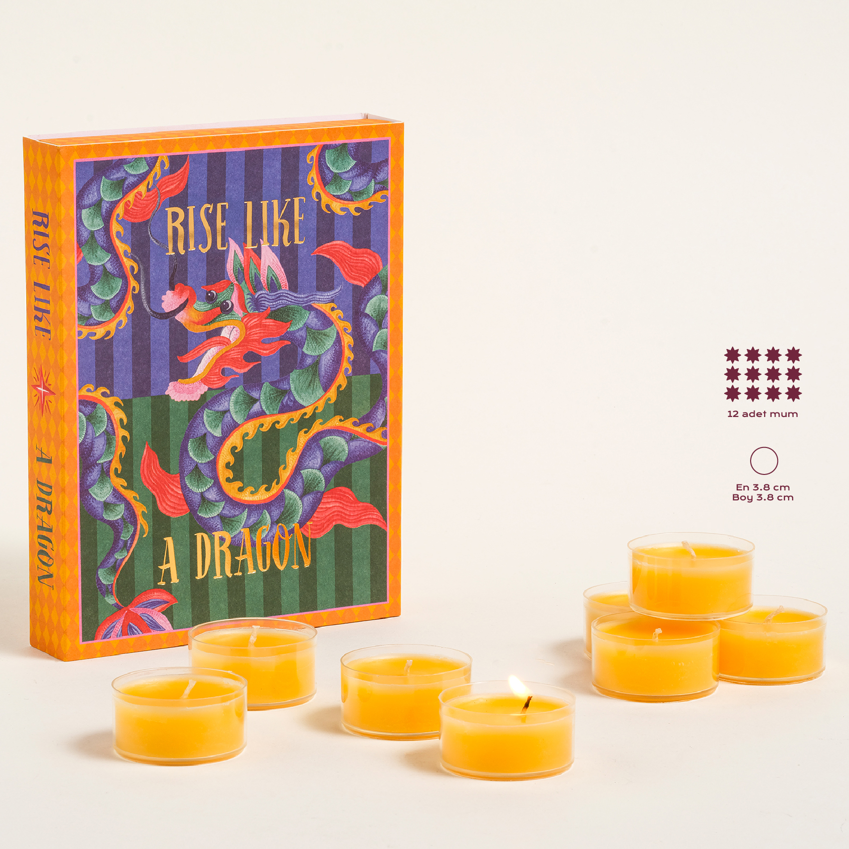 Misi 12’li Tealight Kokulu Mum, amberin sıcak notalarıyla ruhu sararken rengarenk ejderha kutusuyla kalpleri fethediyor. Bu kutu yalnızca mumların yuvası değil, başlı başına sevimli bir hediye. Sevdiklerinize ışık ve neşe dolu bir sürpriz vermek için ideal.