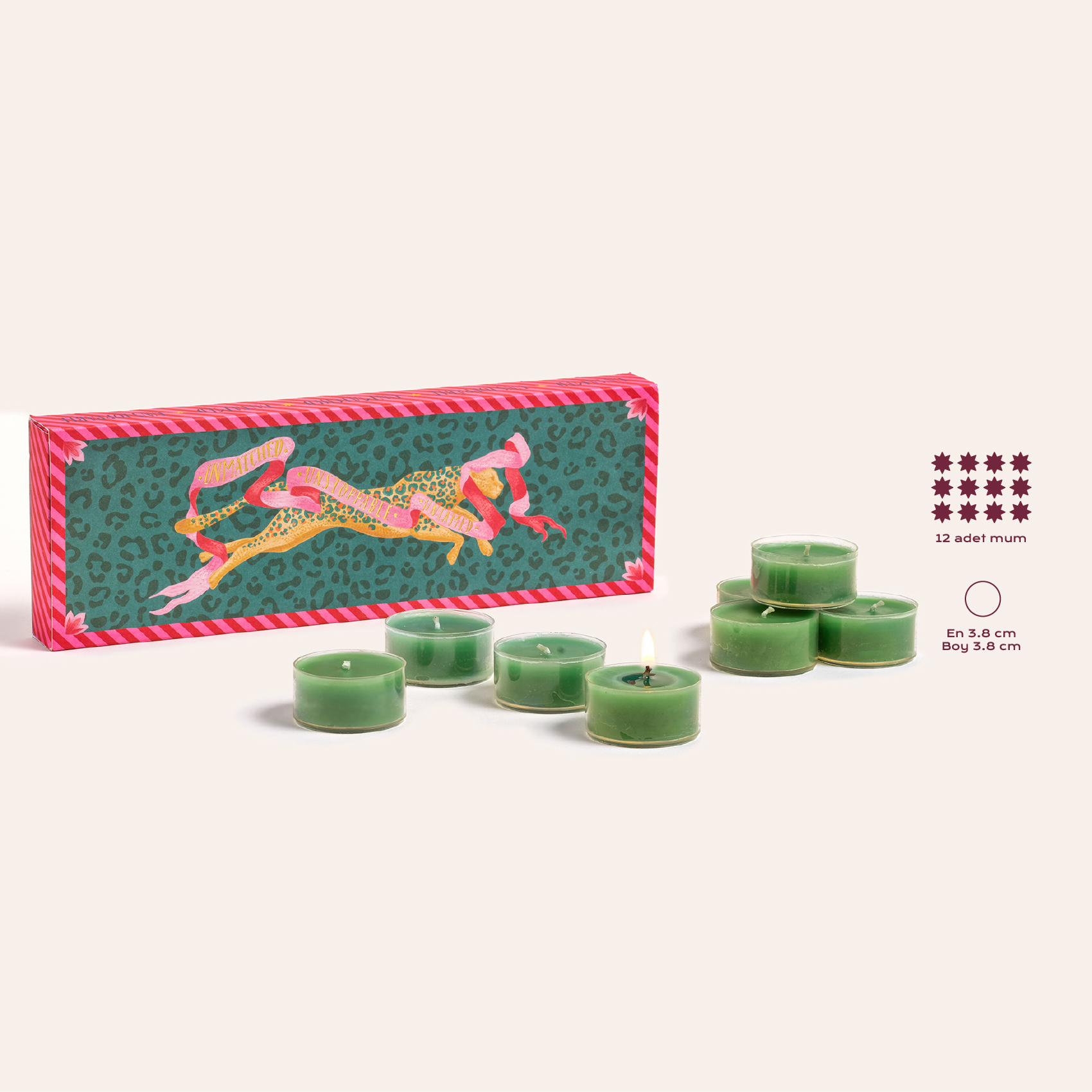 Misi 12’li Tealight Kokulu Mum, yılbaşı ruhunu evinize taşıyan küçük ama güçlü bir mutluluk kaynağı. Cheerland dünyasının renkli kutusu sizi gülümsetirken, içinden yükselen kestane kokusu tatlı ve sıcak bir atmosfer kuruyor. Her bir tealight, sıradan bir anı bile şenlikli bir kutlamaya dönüştürüyor. İster kendiniz için alın, ister sevdiklerinize hediye edin.