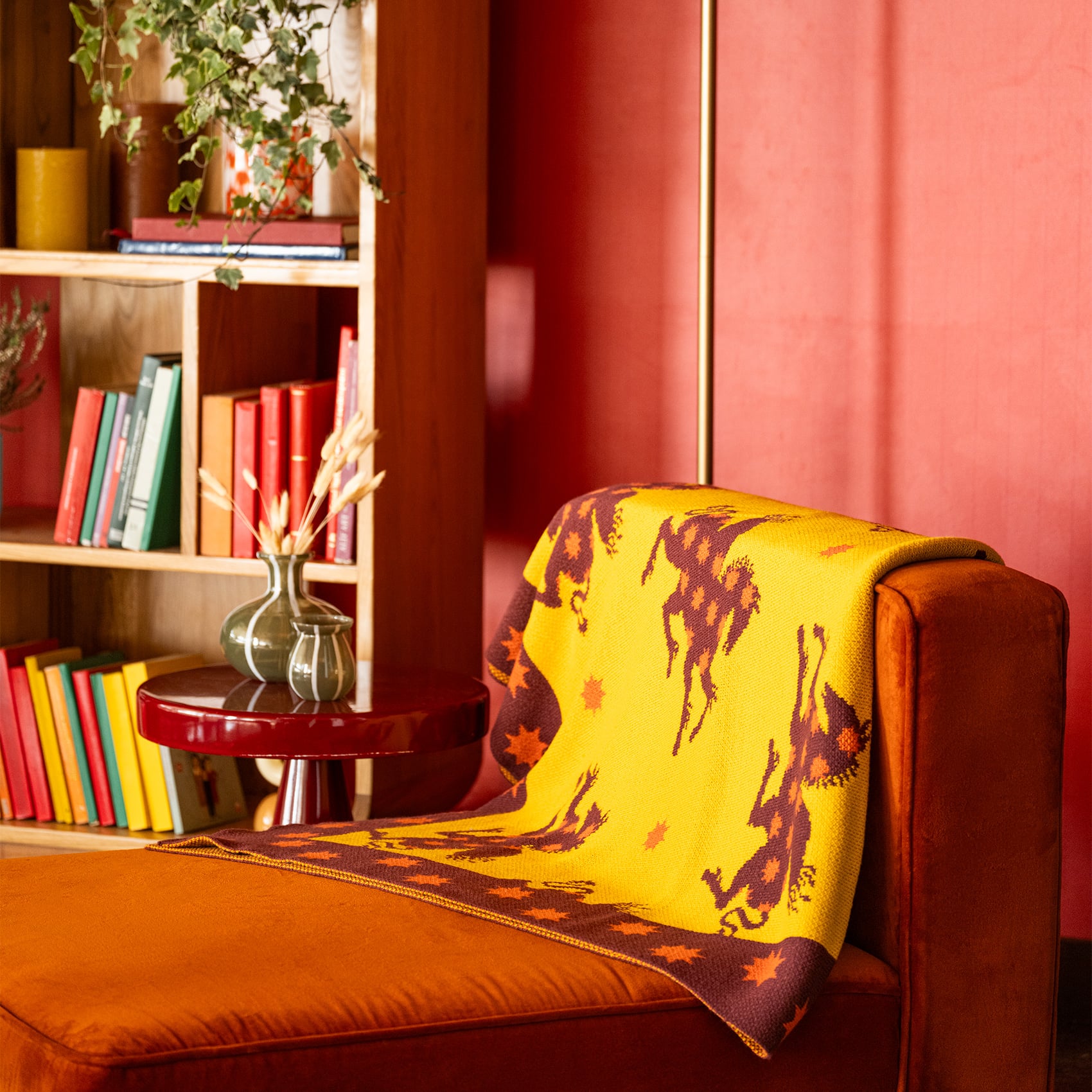 Moda Jakarlı Örme Akrilik Akrilik Koltuk Şalı 130x170 Cm Sarı