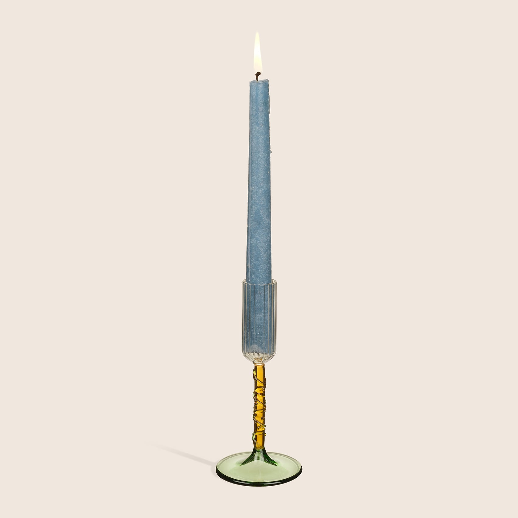 Nanjıng Borosilikat Cam Şamdan 7x7x15 Cm Sarı - Yeşil