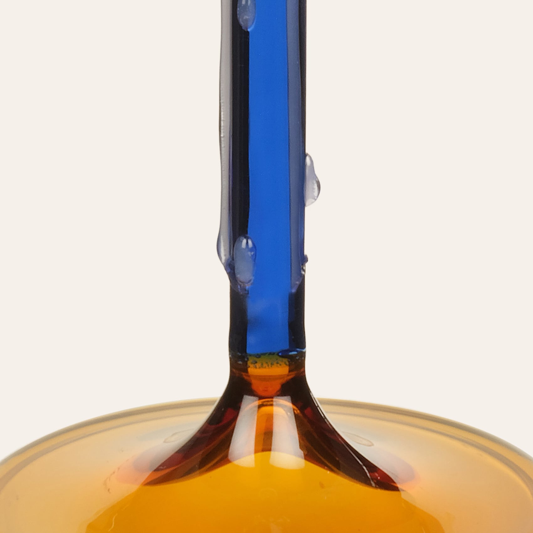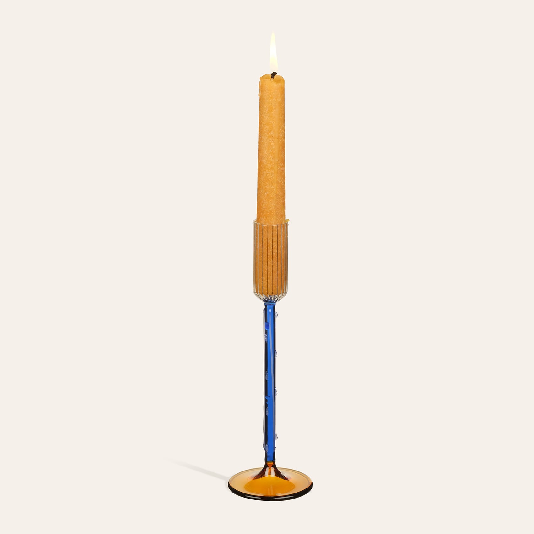 Nanjıng Borosilikat Cam Şamdan 7x7x21 Cm Mavi - Sarı