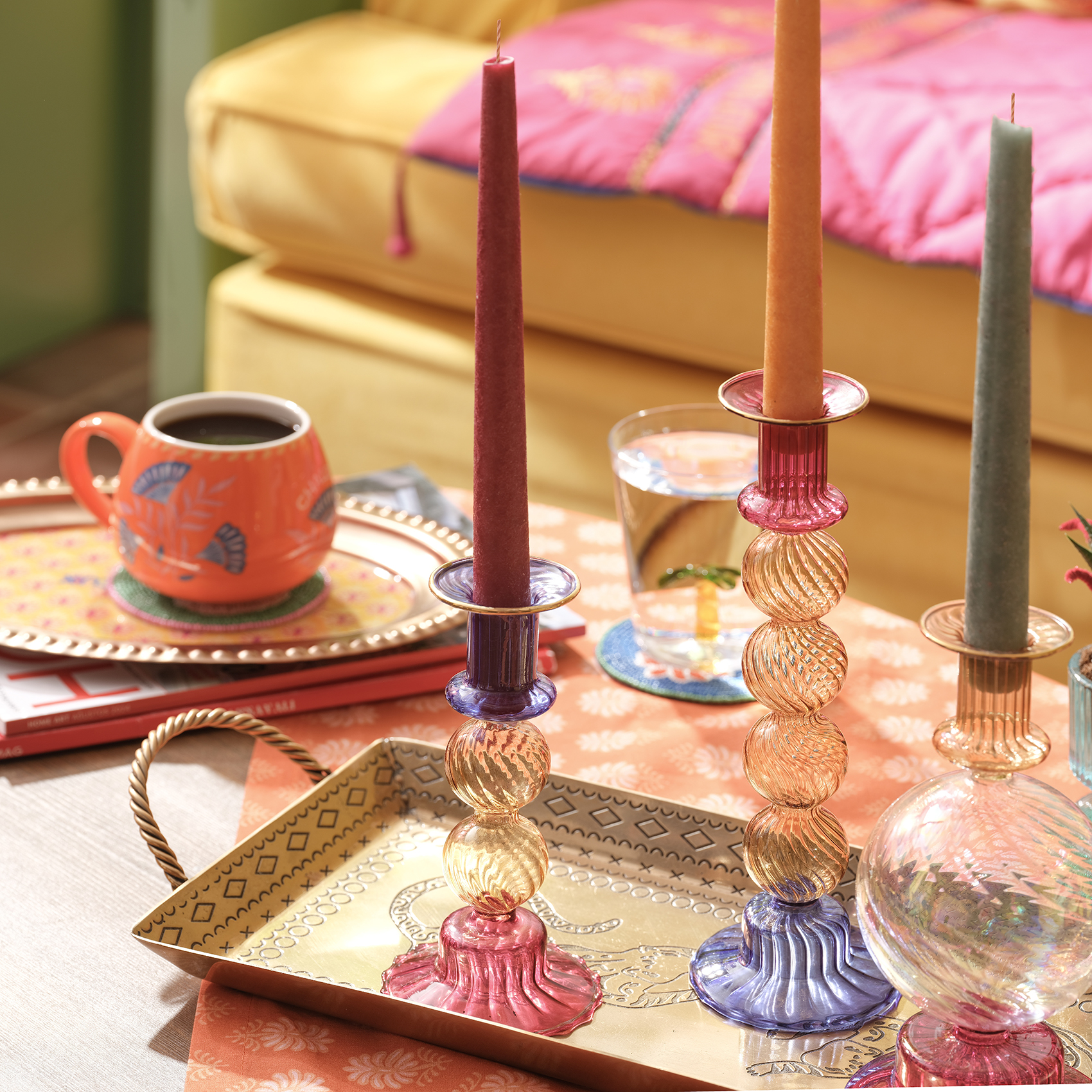 Nanjıng Borosilikat Cam Şamdan 8x8x17 Cm Renkli