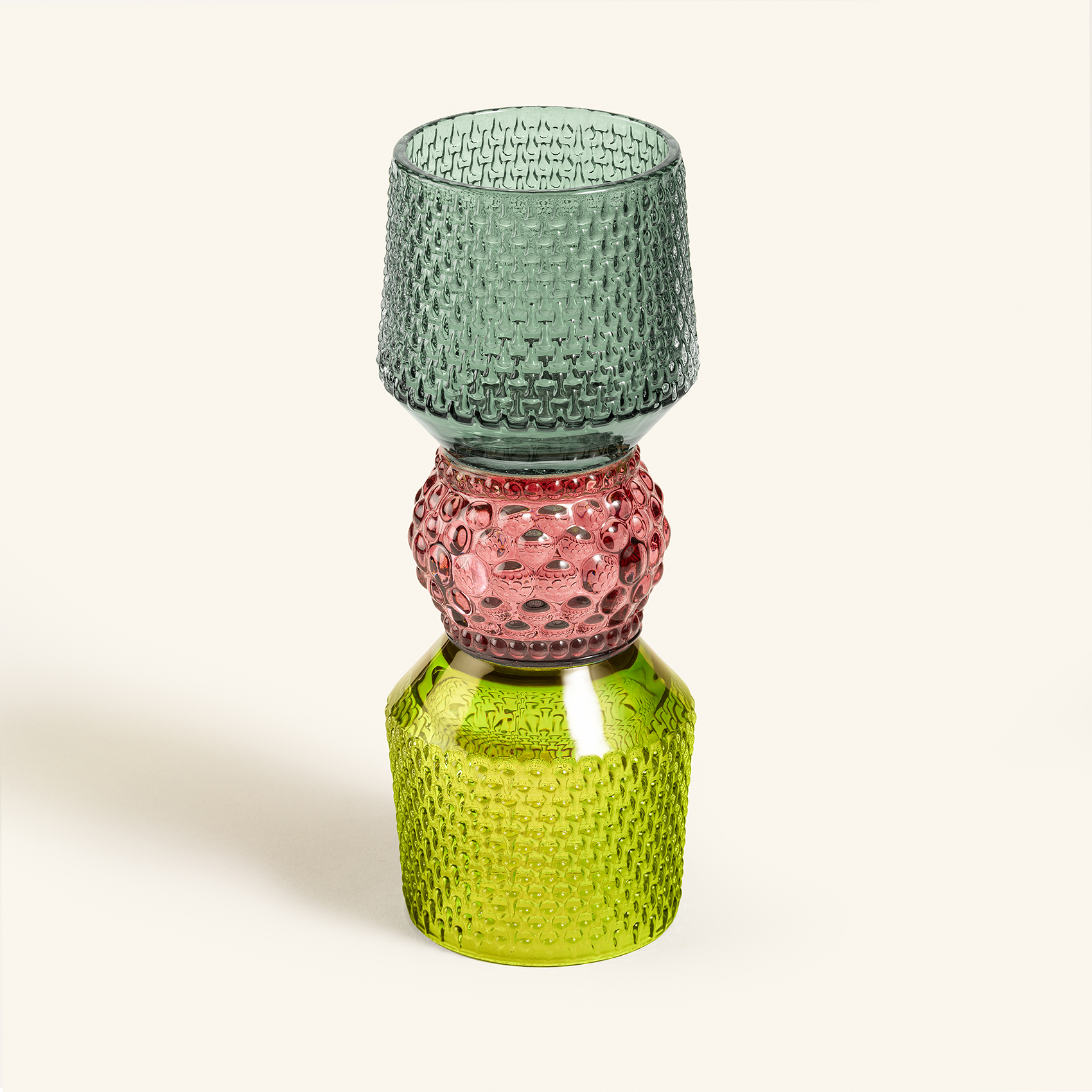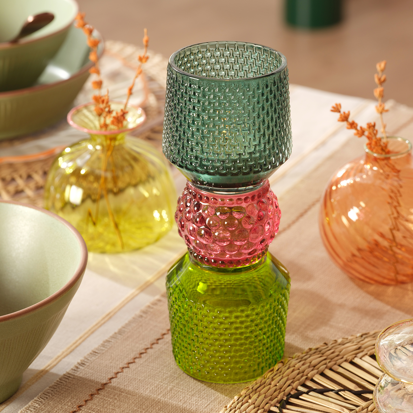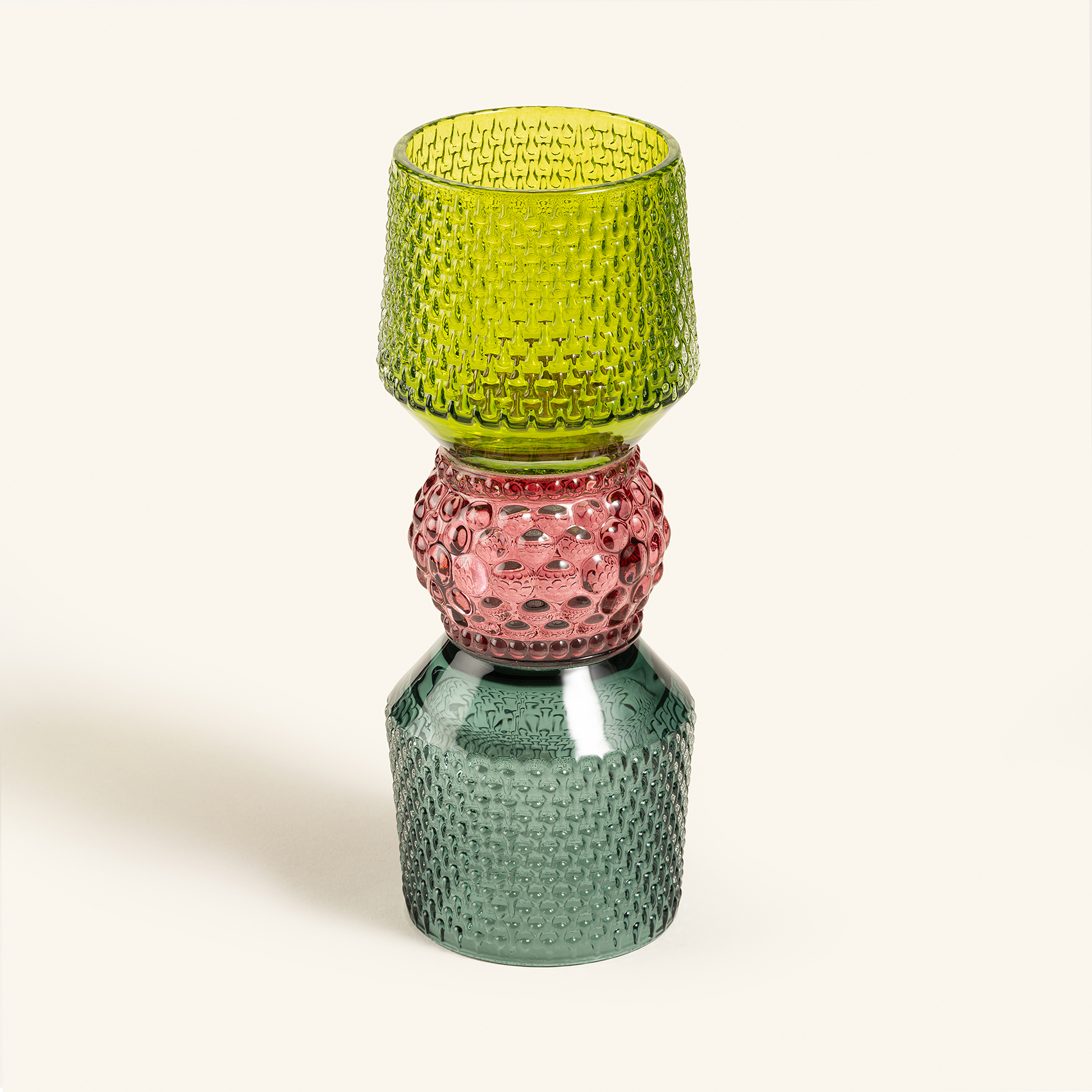 Nanjıng Cam Dekoratif Obje 8x8x21 Cm Yeşil - Fuşya - Turkuaz