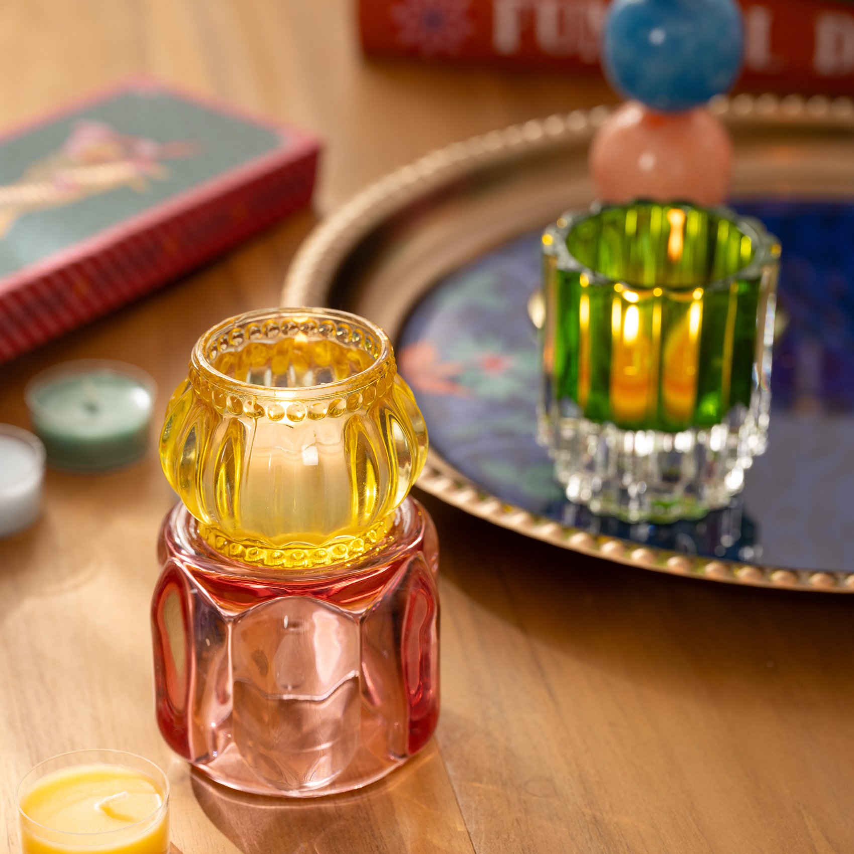 Kutlamaların enerjisini yansıtan Nanjing Cam Mumluk, el yapımı cam işçiliğiyle mekâna ışıltılı bir ruh katıyor. İçine bir tealight yerleştir, ışığın tadını çıkar ve ortamın nasıl küçük bir kutlamaya dönüştüğünü hisset.