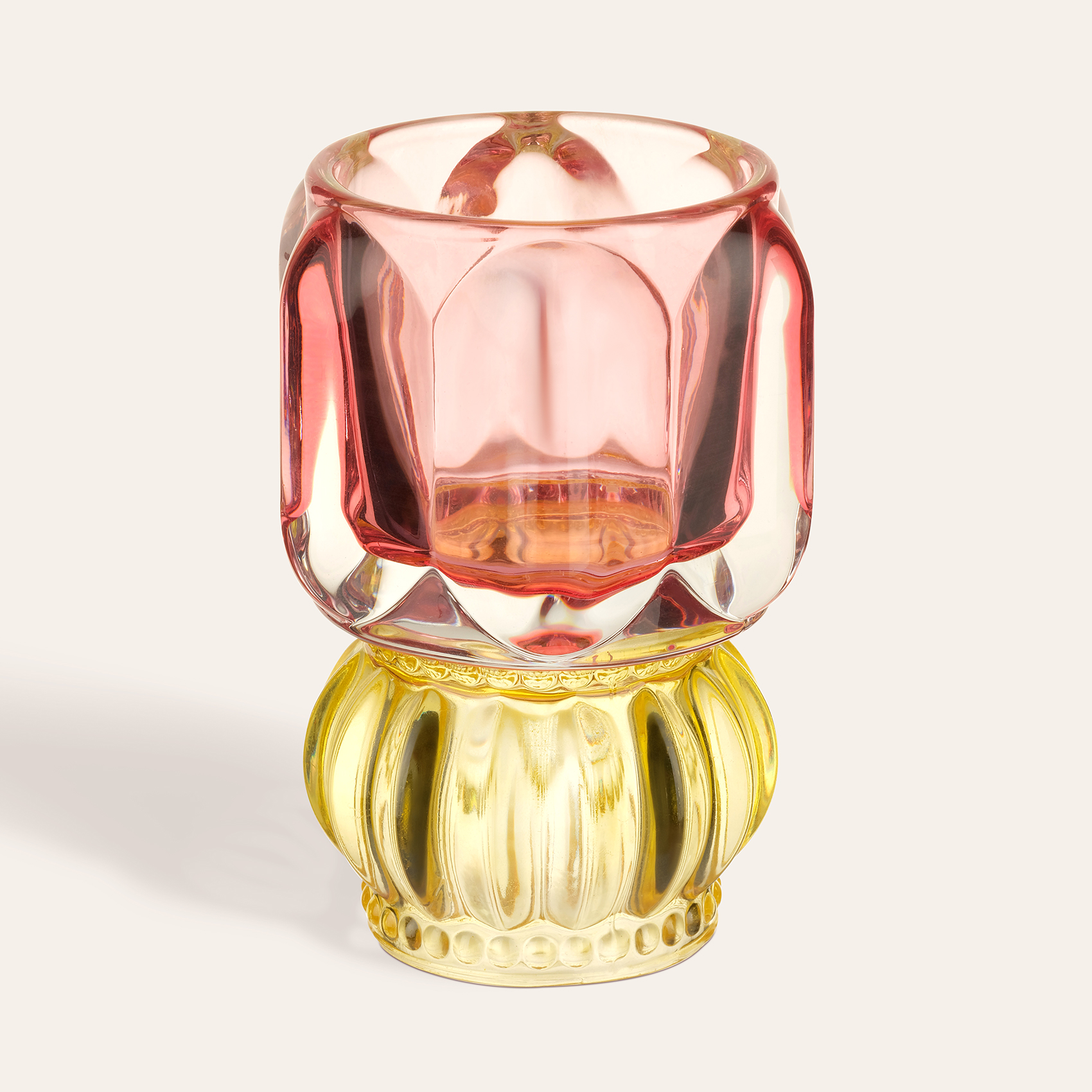 Nanjıng Cam Mumluk 8x8x11 Cm Pembe - Sarı