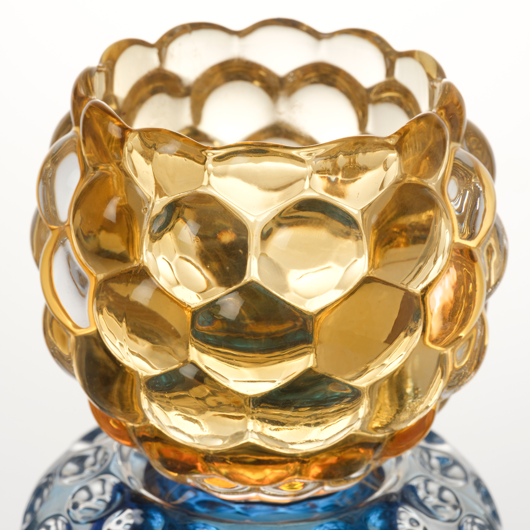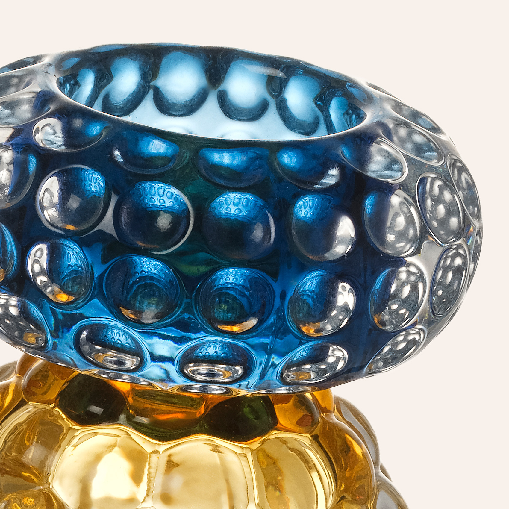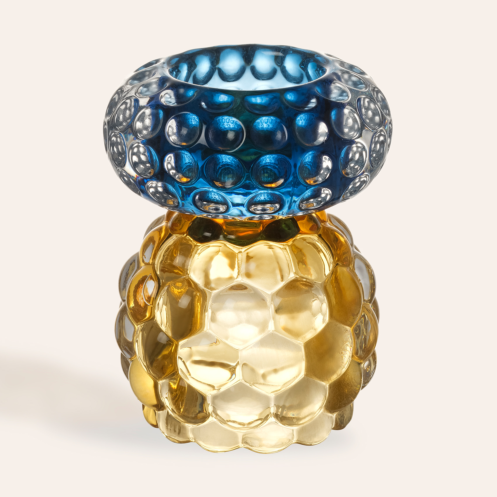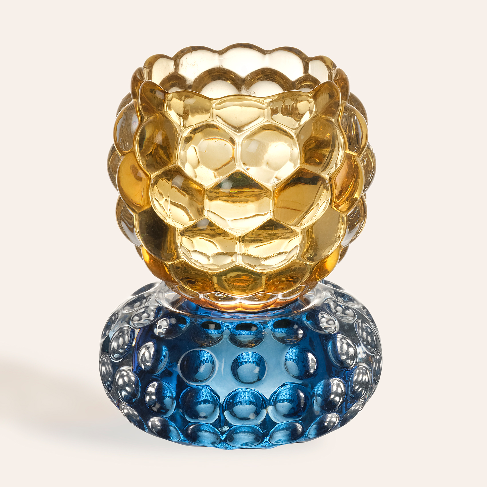 Nanjıng Cam Mumluk 8x8x11 Cm Sarı - Mavi
