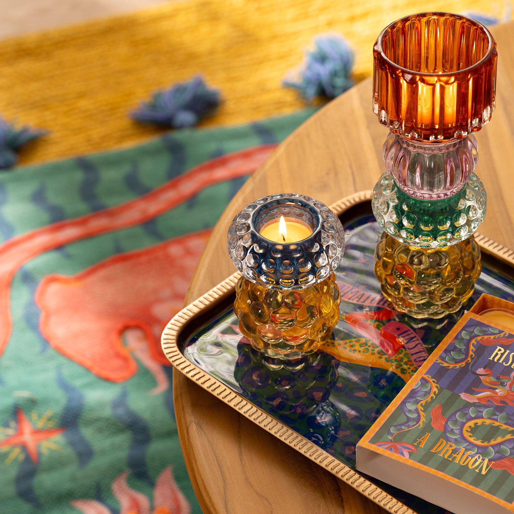 Kutlamaların enerjisini yansıtan Nanjing Cam Mumluk, el yapımı cam işçiliğiyle mekâna ışıltılı bir ruh katıyor. İçine bir tealight yerleştir, ışığın tadını çıkar ve ortamın nasıl küçük bir kutlamaya dönüştüğünü hisset.