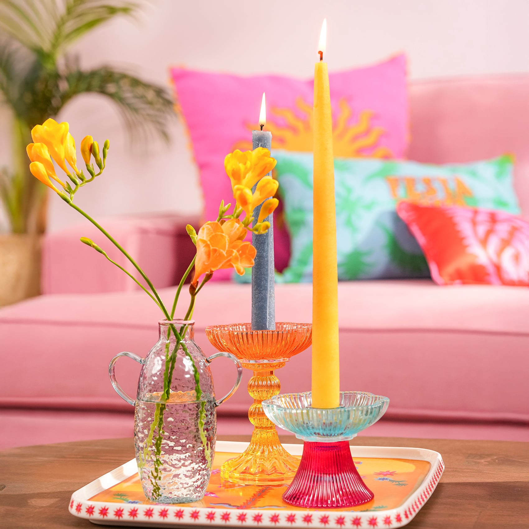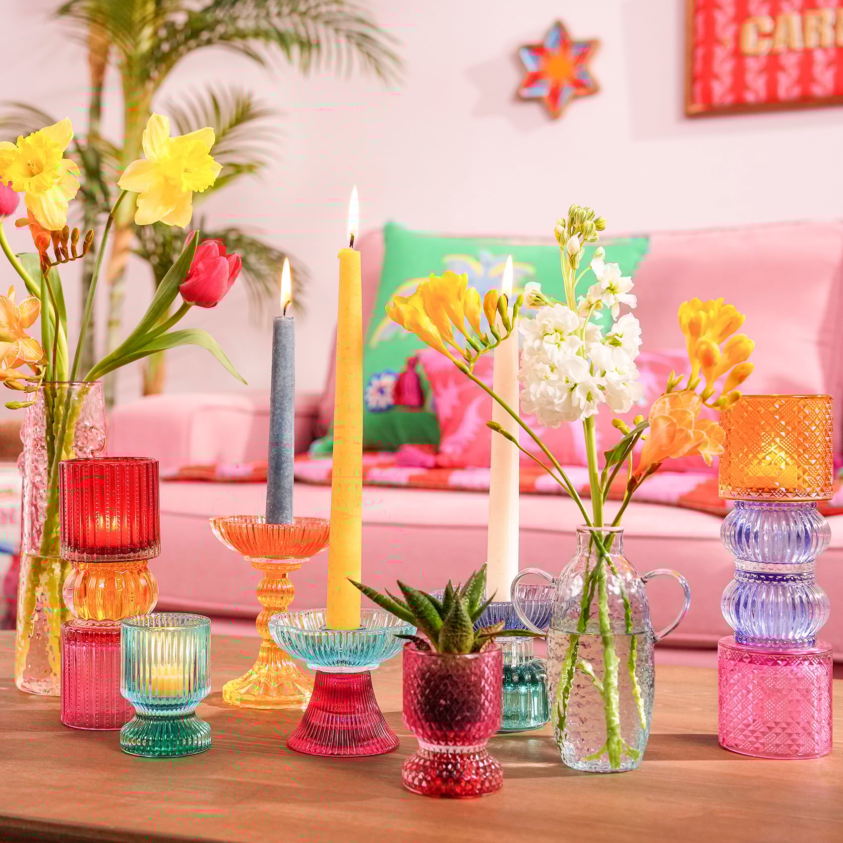 Nanjıng Cam Şamdan 10.2x10.2x13.5 Cm Renkli